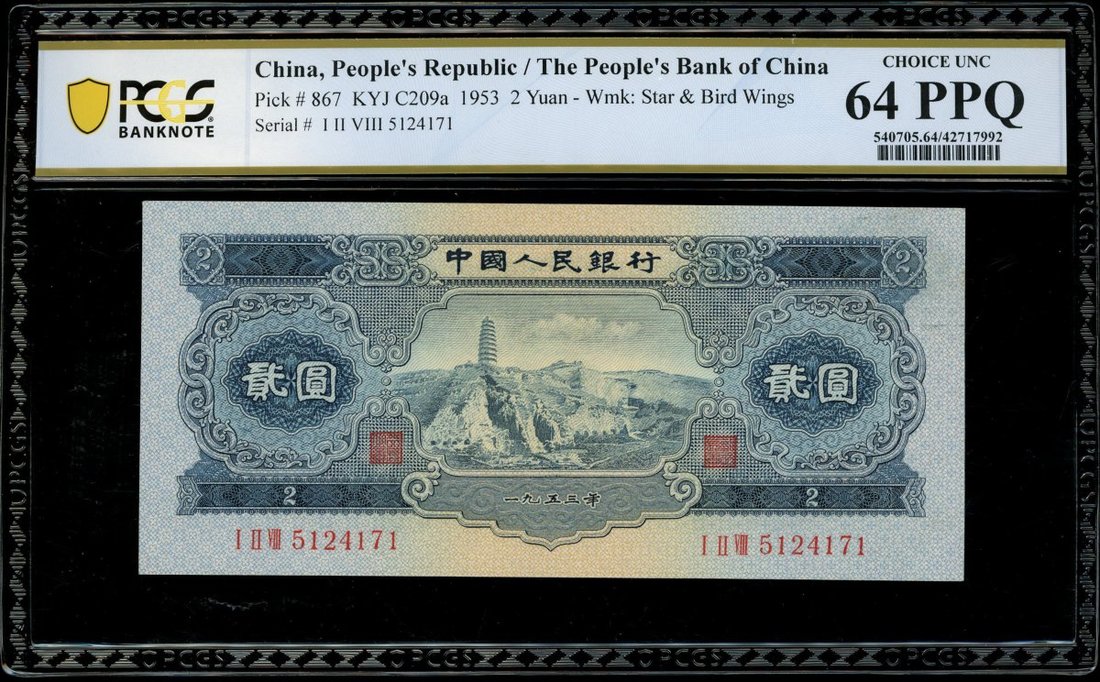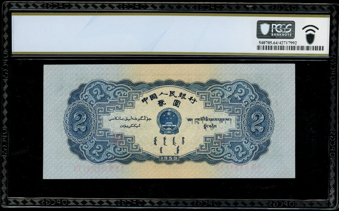 1953年中國人民銀行第二版人民幣貳圓,編號I II VIII 5124171,PCGS Banknote 64PPQ