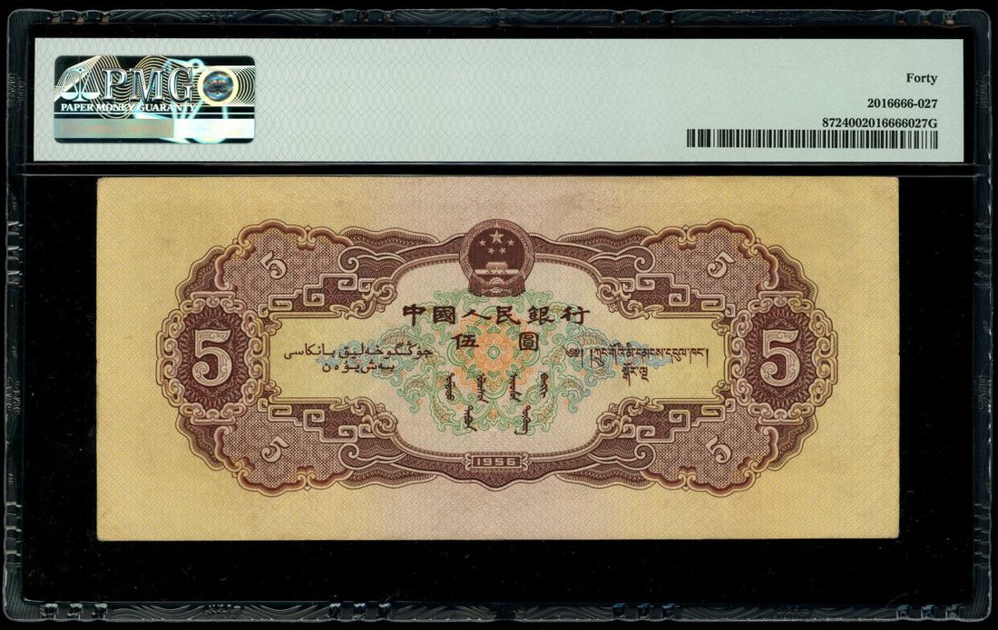 1956年中國人民銀行第二版人民幣伍圓,星水印,編號VII I IV 7316467,PMG 40