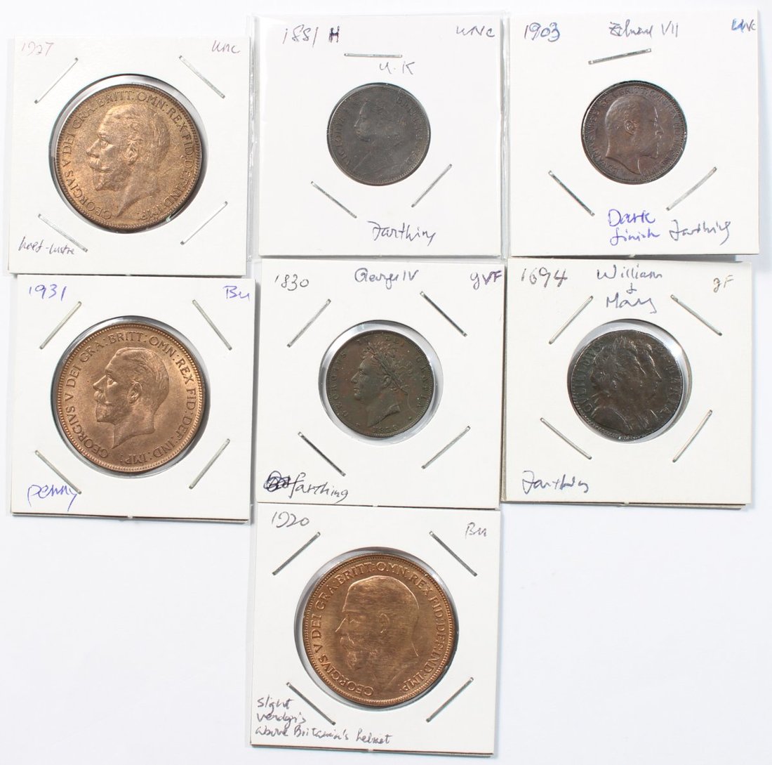 Great Britain, group of 7 fractionals: Farthing: 1694, 1830, 1881-H and 1903,