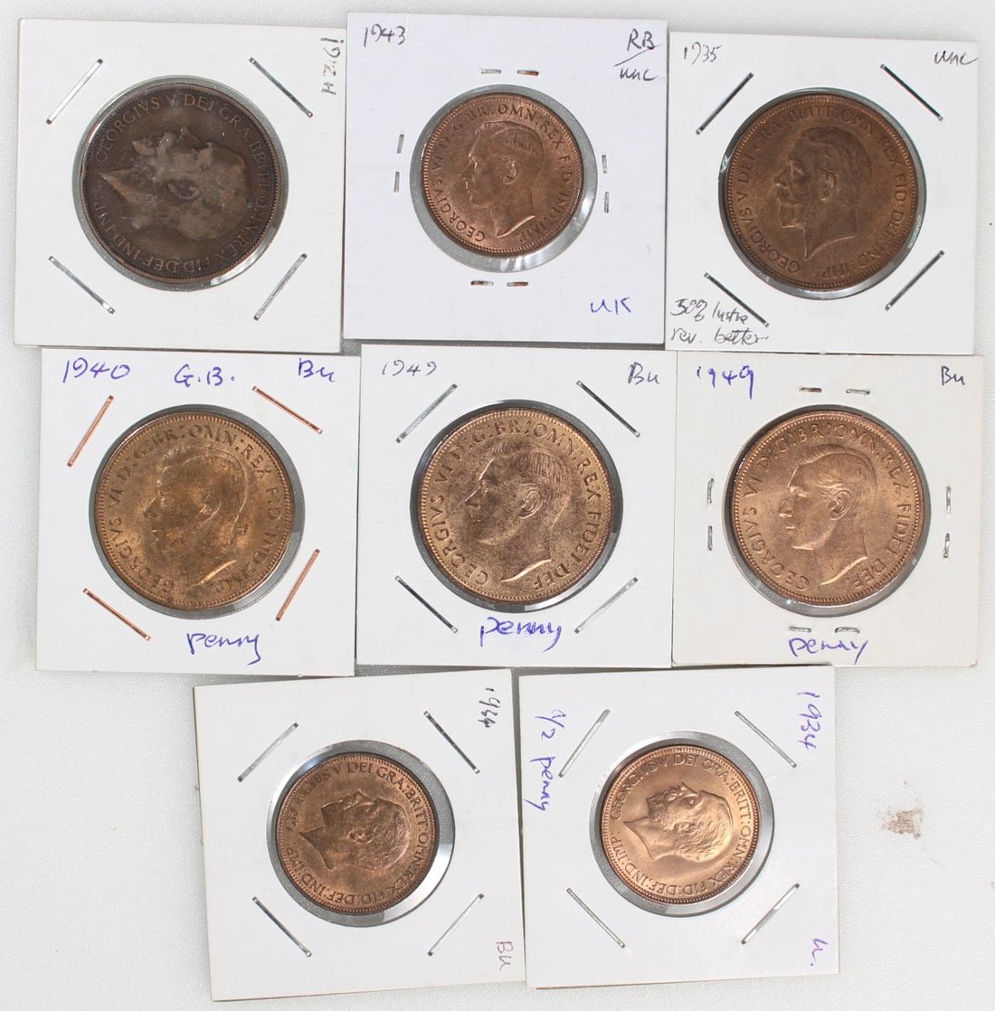 Great Britain, group of 8, consisting of 3x 1/2 penny, 1934, and 5x 1 penny, 1912H, 1935, 1940 and 1949 (2), the 1912 penny about fine, the rest uncirculated (6)
