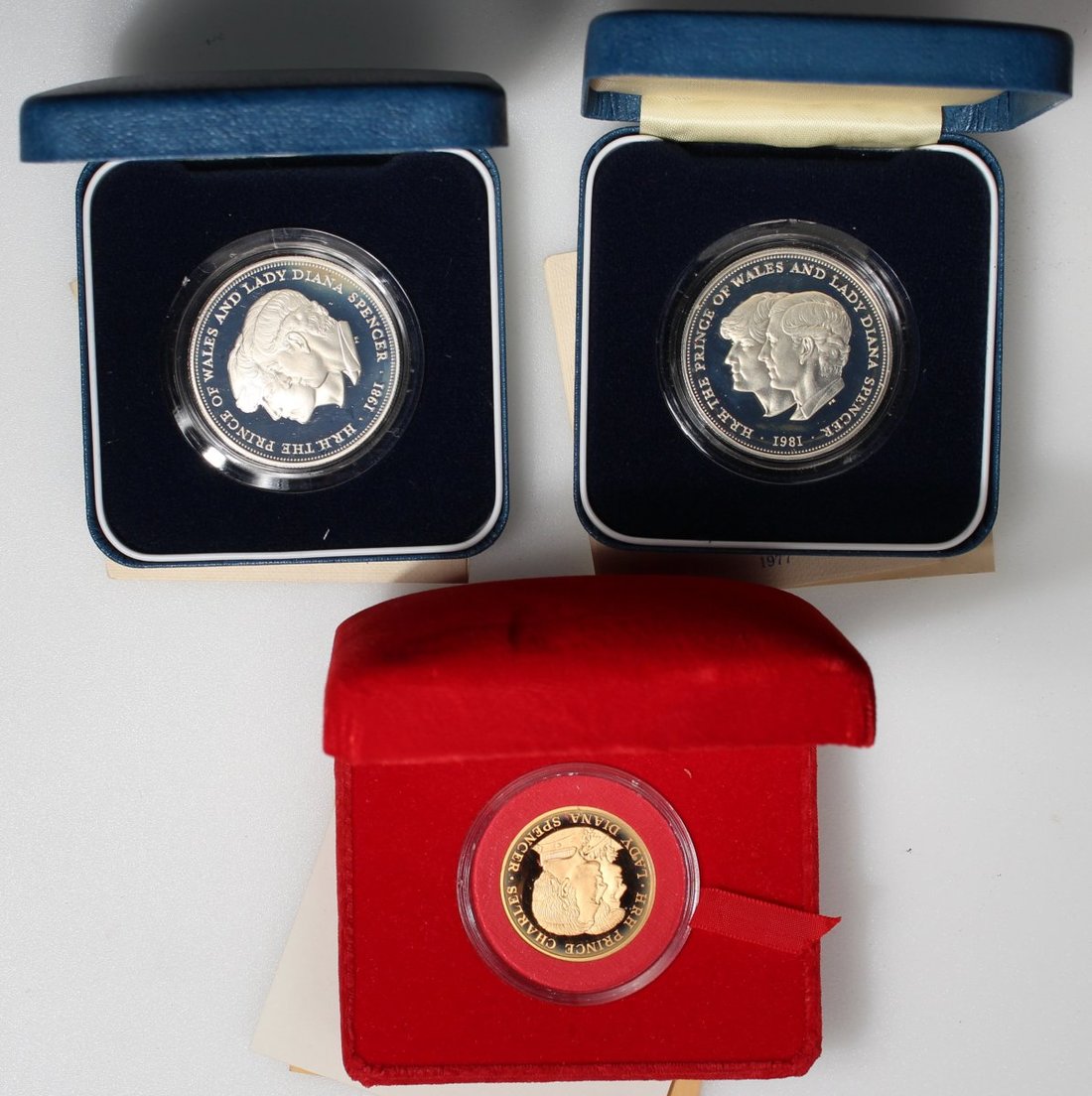 Great Britain, 3x Royal Wedding commemorative issues, 1981, York Mint gold proof medal, weighs 10g, 22 carat gold,