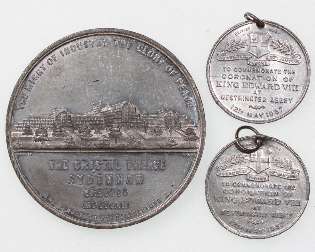 Great Britain, a group of 3x silver medals, consists of "The Crystal Palace Sydenham" by G. Dowler, 1862, and 2x Coronation of King Edward VIII, 1937, extremely fine to about uncirculated (3).