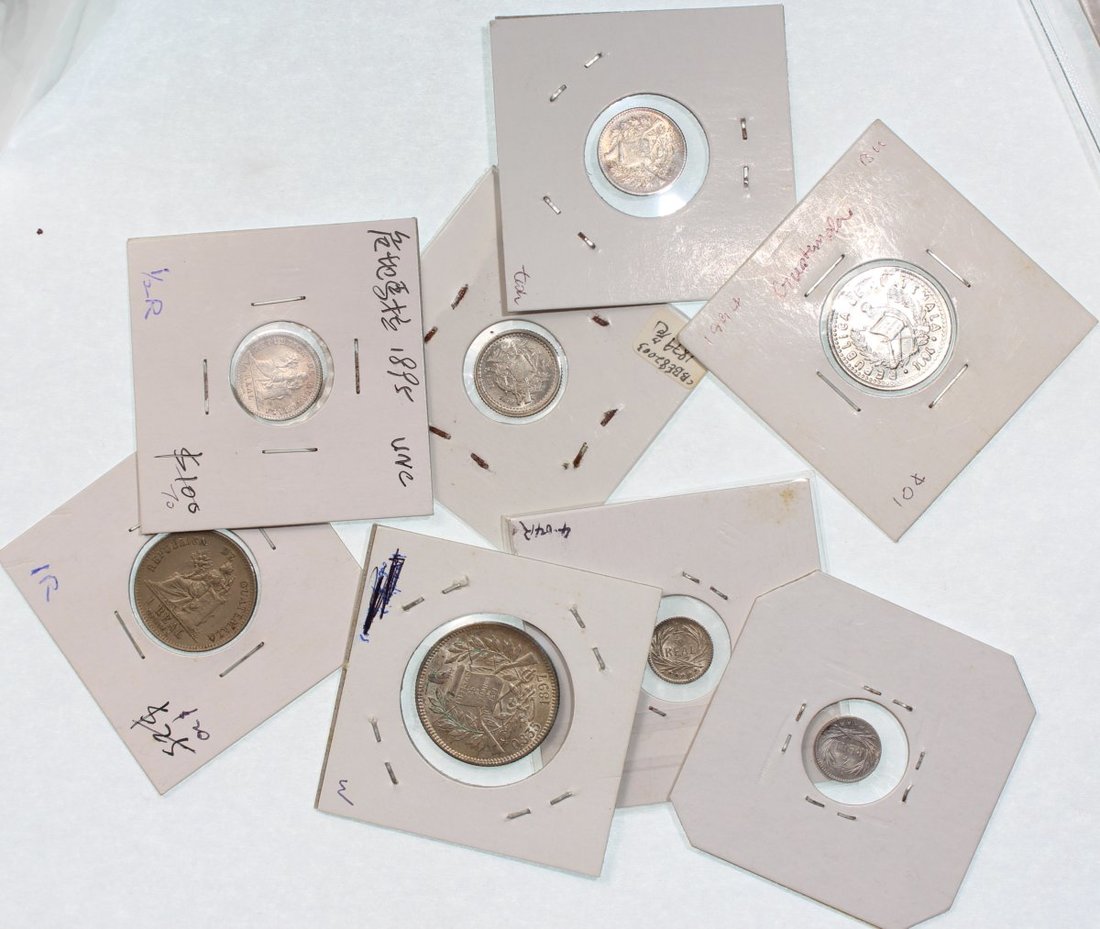 Guatemala, a group of 8x coins, from 1/4 real ro 2 reals, 1879D-1994, all uncirculated or near so, some silver noted (8).