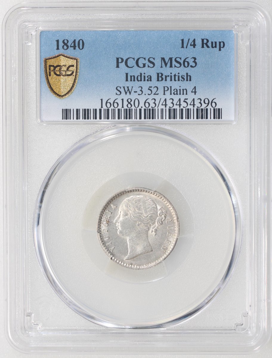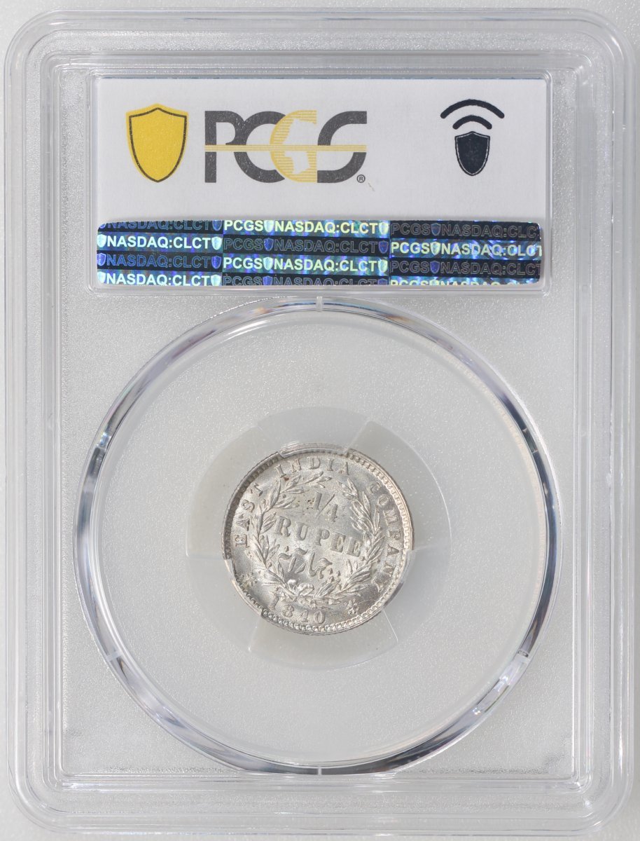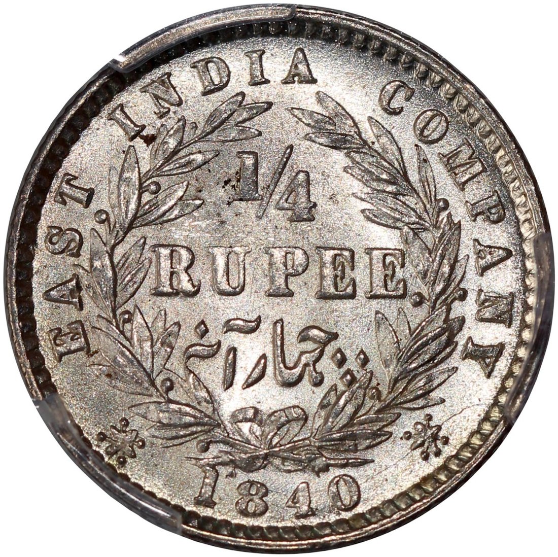 1840年英屬印度1/4盧比銀幣,PCGS MS63,#43454396