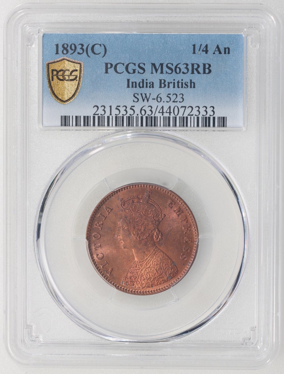 Indoa British, 1/4 anna, 1893(C), (SW-6.523), PCGS MS63RB, #44072333.
