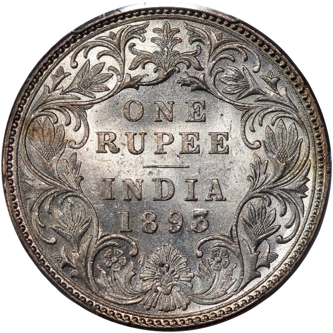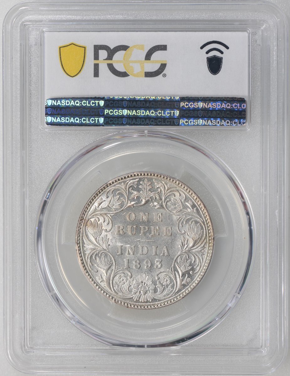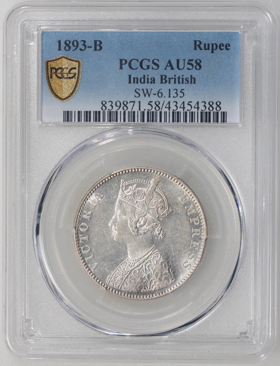 British India, silver Rupee, 1893-B, (SW-6.135), PCGS AU58, #43454388.