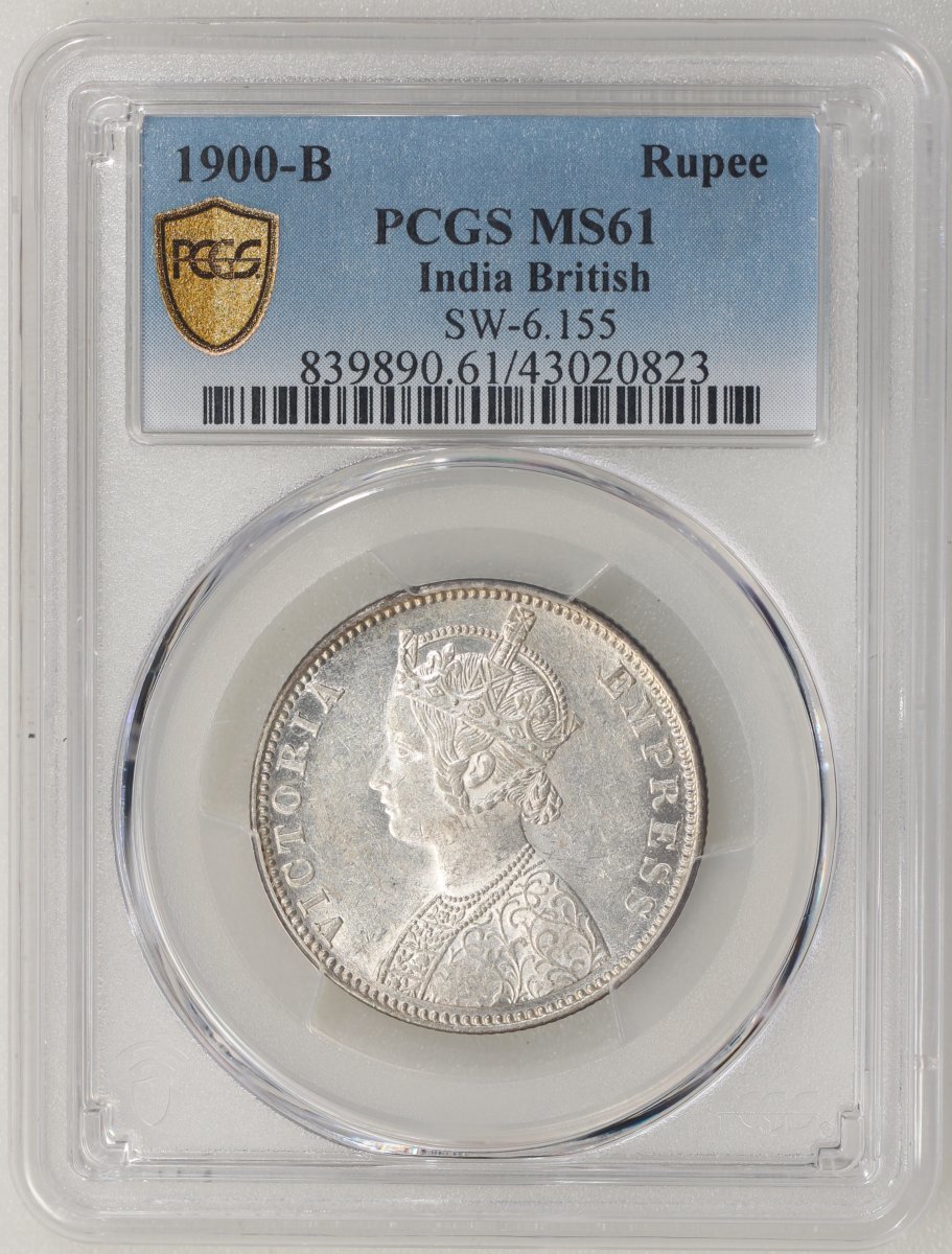 1900-B英屬印度盧比銀幣,PCGS MS61,#43020823