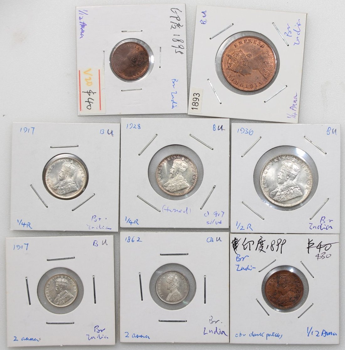 英屬印度錢幣一組8枚,詳見圖示,大致UNC,銅幣有包漿