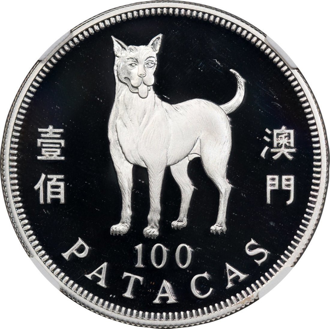 Macau, silver proof 100 Patacas, 1994, Year of the Dog, ASW 0.84oz,