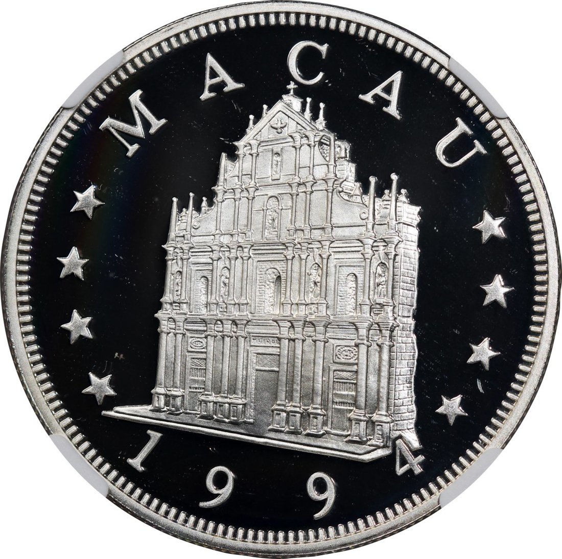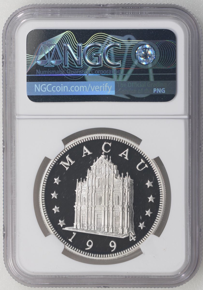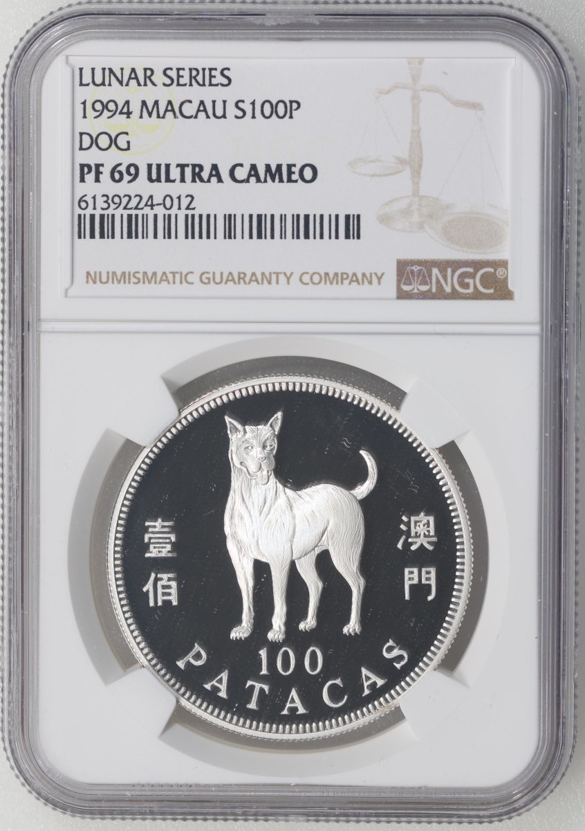1994年澳門狗年精鑄生肖紀念銀幣100元,ASW0.84安士,NGC PF69 Ultra Cameo,#6139224-012,附原盒及證書,編號2667,發行5000枚
