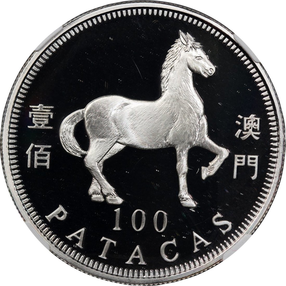 Macau, silver proof 100 Patacas, 2002, Year of the Horse, ASW 0.84oz,