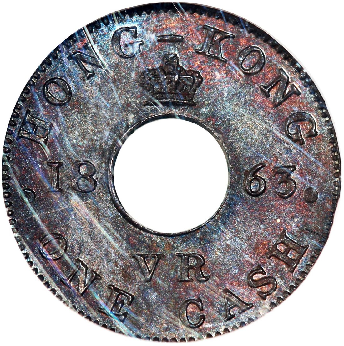 Hong Kong, copper 1 cash, pattern, 1863, NGC PF63BN, rare.