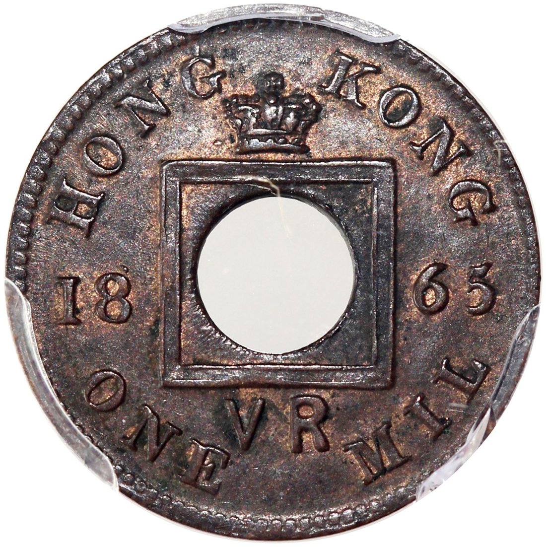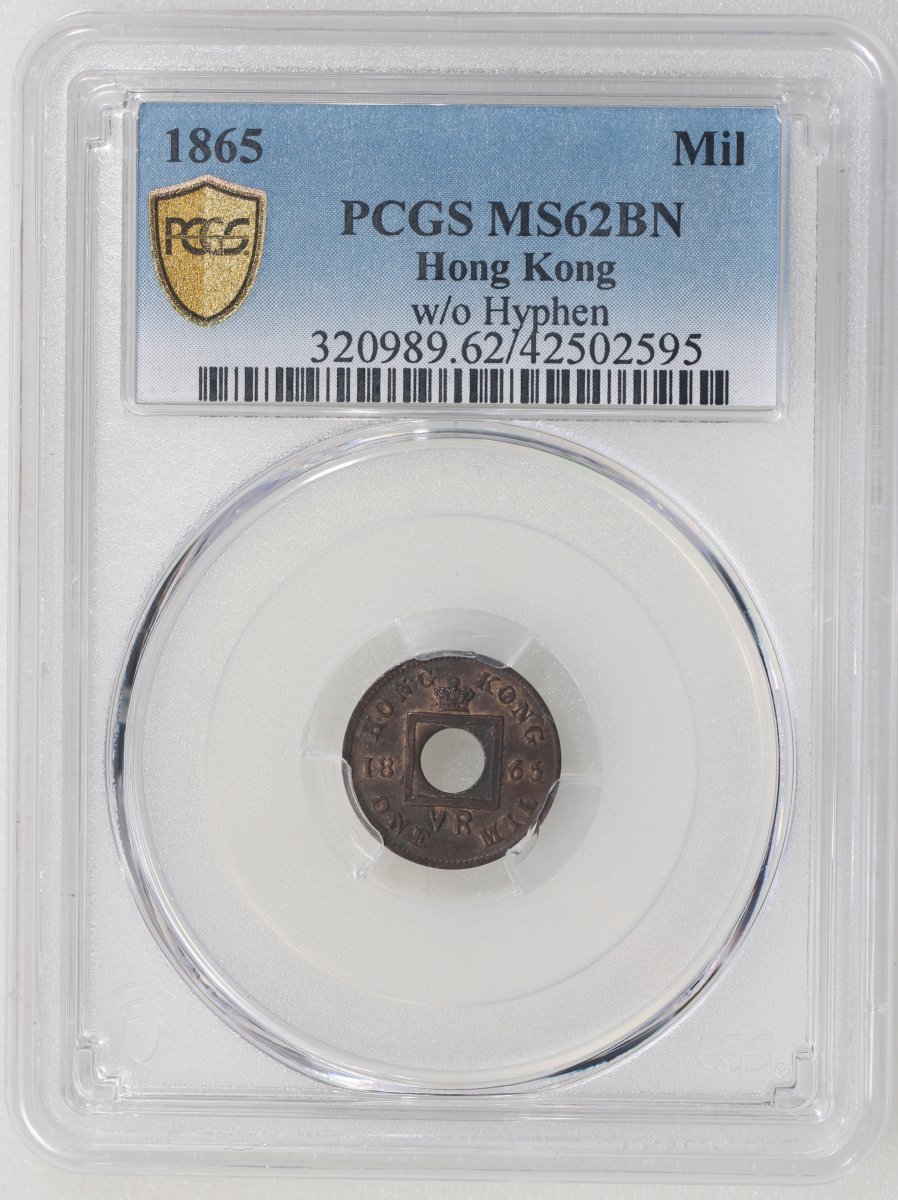 Hong Kong, 1 mil, 1865, without hyphen, PCGS MS62BN, #42502595.