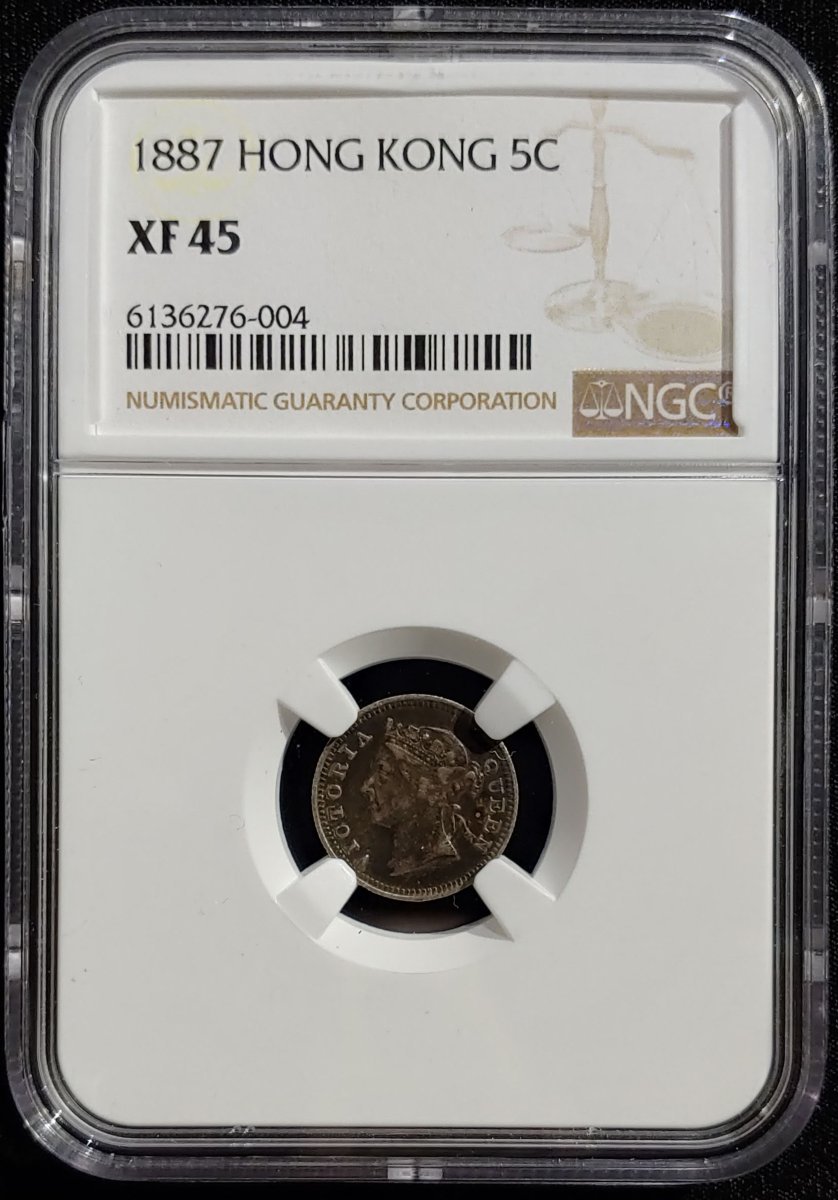 Hong Kong, silver 5 cents, 1887, NGC XF45, #6136276-004.