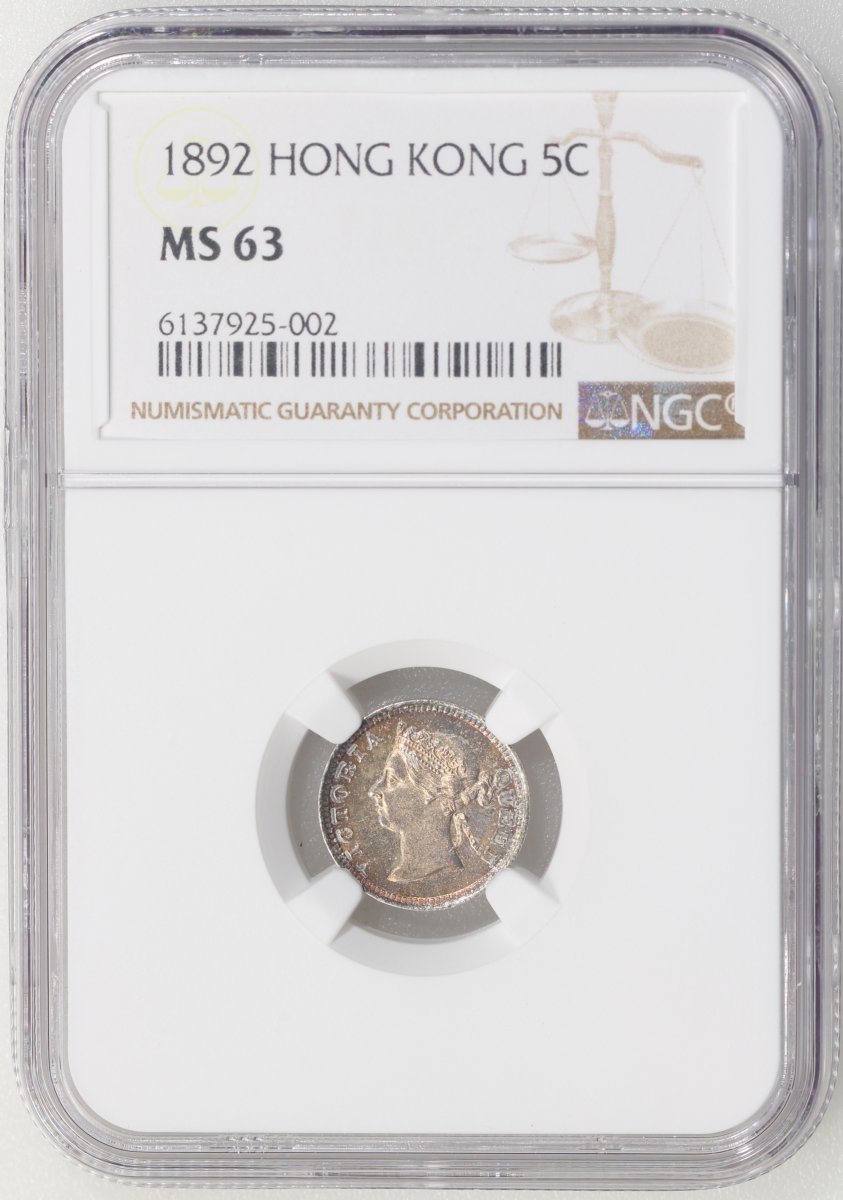 1892年香港5仙,NGC MS63,蜜糖棕調包漿,#6137925-002