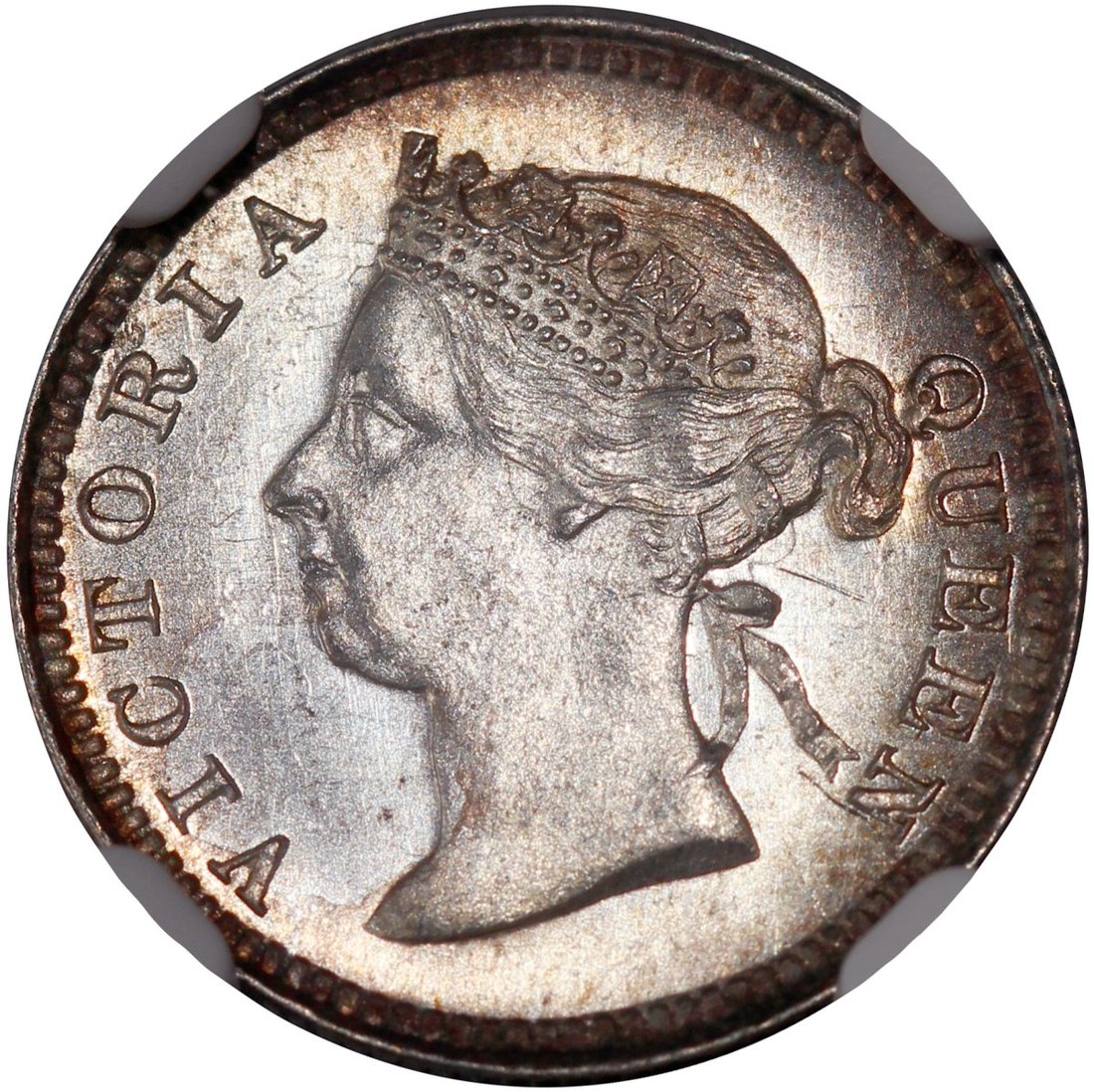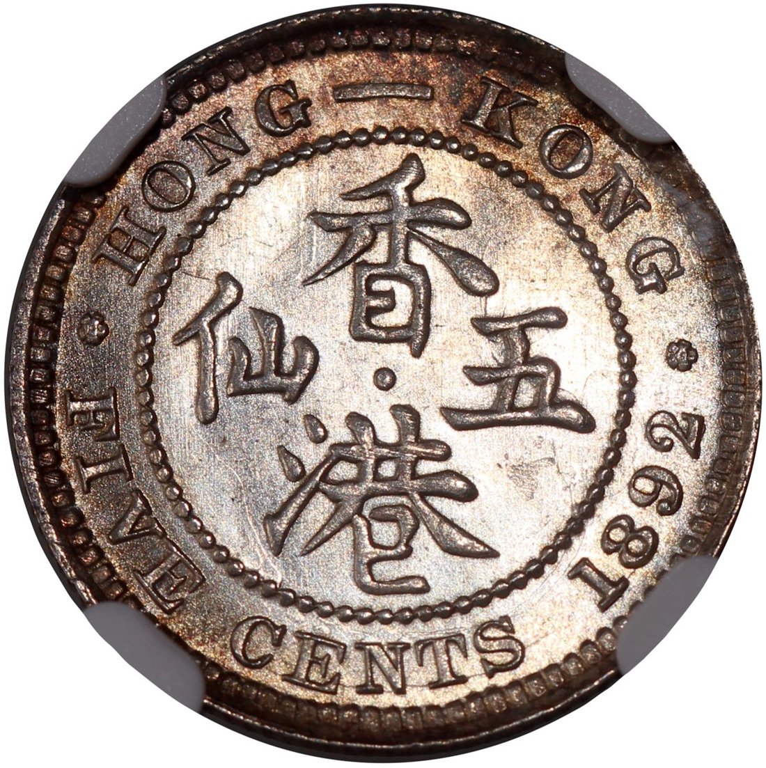 Hong Kong, silver 5 cents, 1892, NGC MS63, golden brown toning at rim, #6138319-038.
