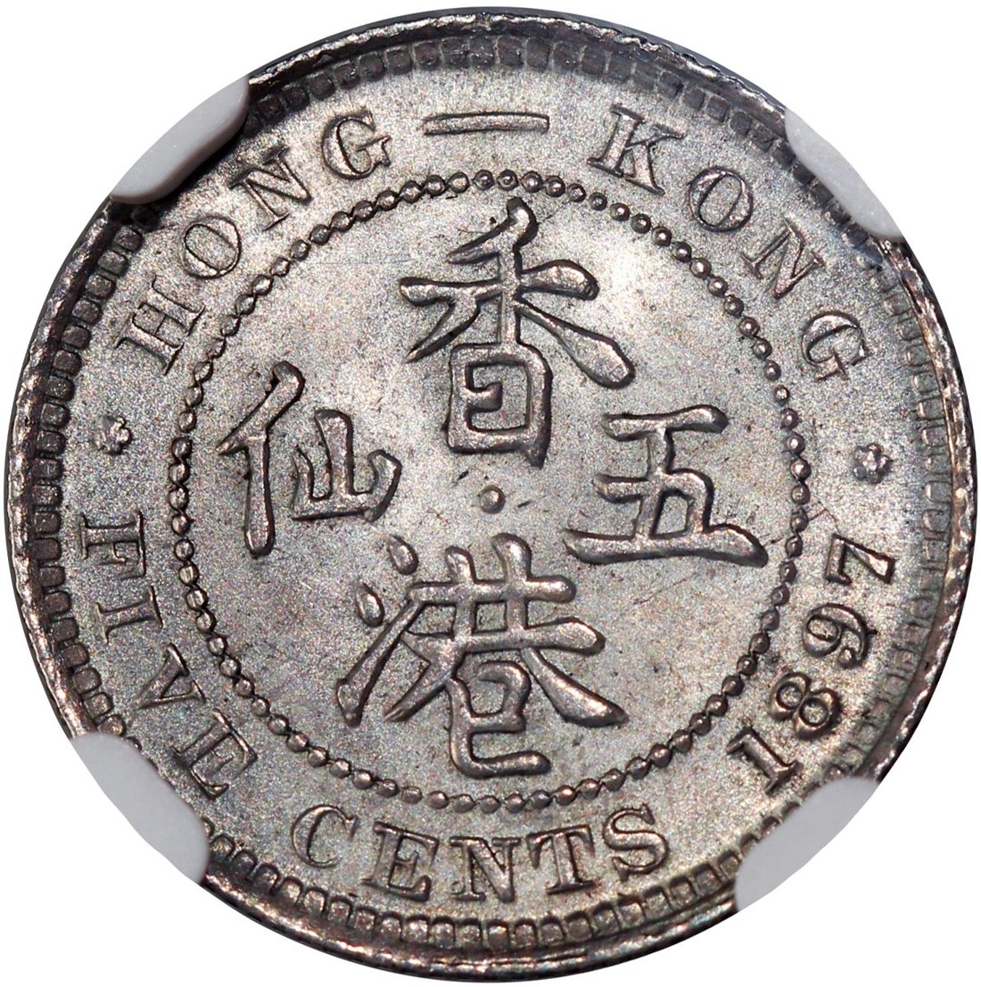 Hong Kong, silver 5 cents, 1897, NGC MS63, #6138319-064.