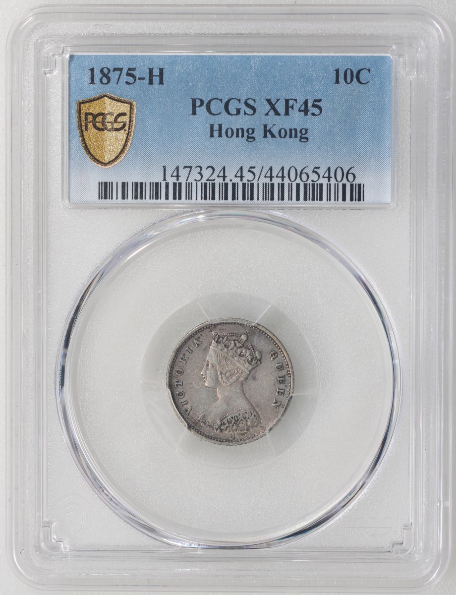 Hong Kong, silver 10 cents, 1875-H, PCGS XF45, #44065406.