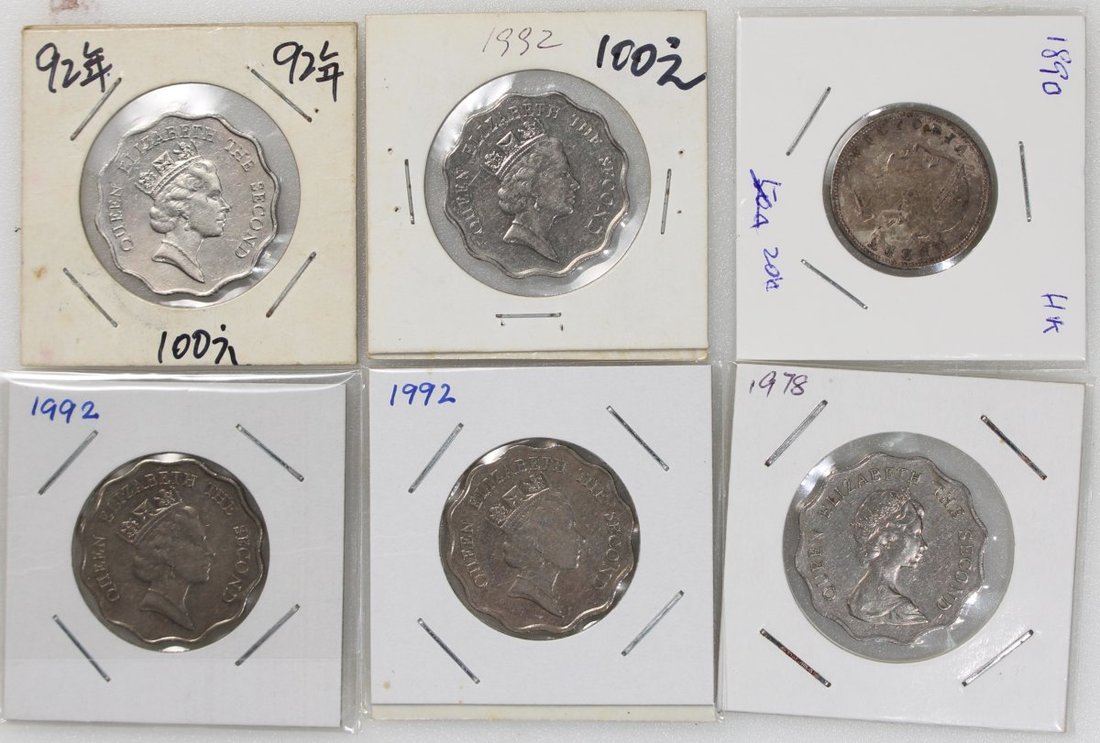 香港錢幣一組6枚,包括較罕見之1992年5元,VF至近UNC品相