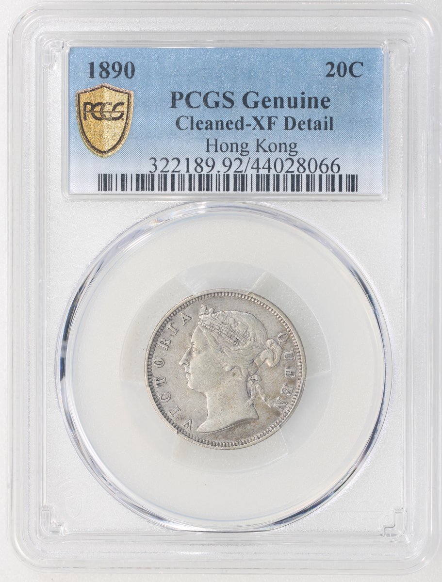 Hong Kong, silver 20 cents, 1890, PCGS Genuine Cleaned - XF Detail, #44028066.