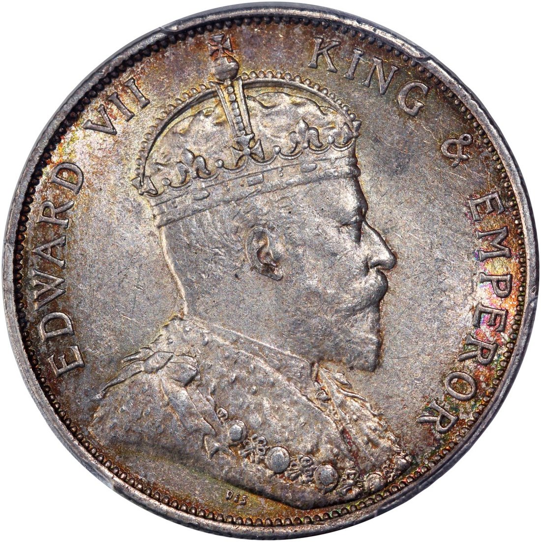 1905年香港5毫,PCGS AU58,#42782545,背面有彩虹包漿