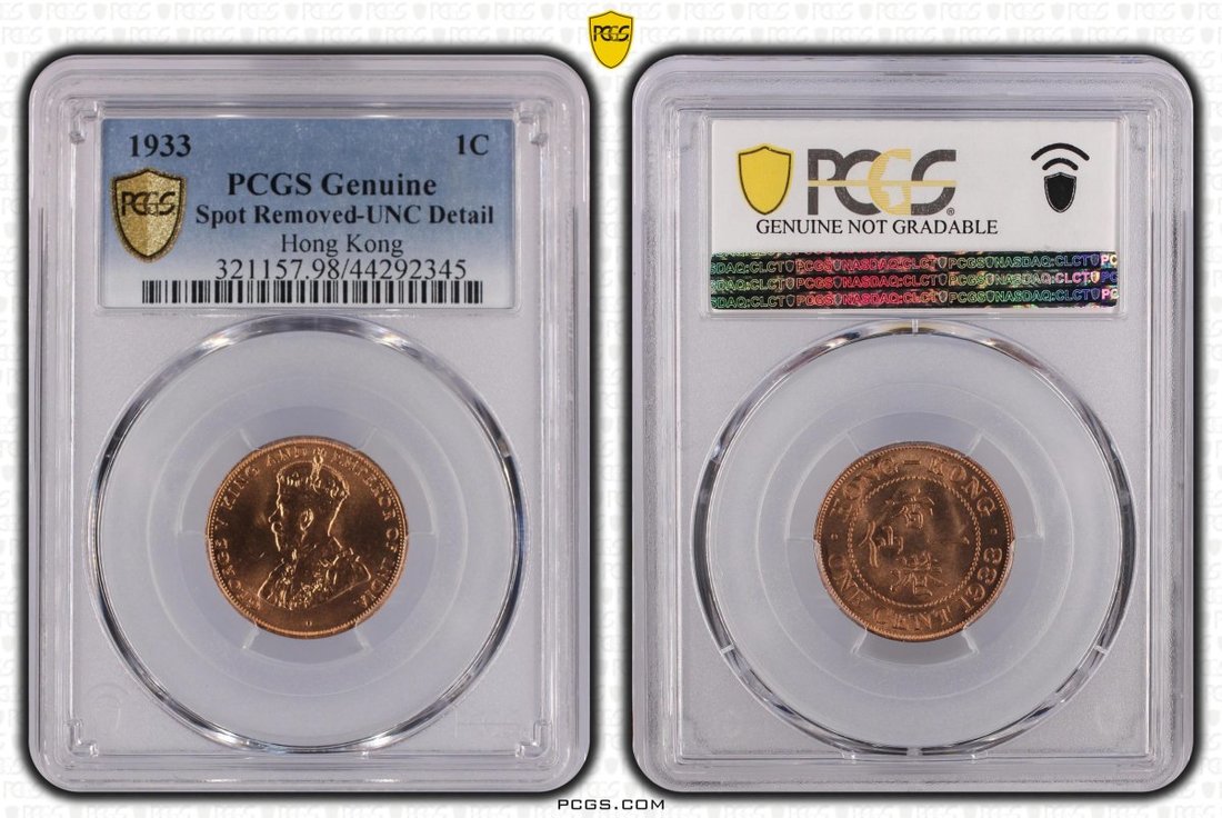 Hong Kong, bronze 1 cent, 1933, PCGS Genuine Spot Removed - UNC Detail, #44292345.