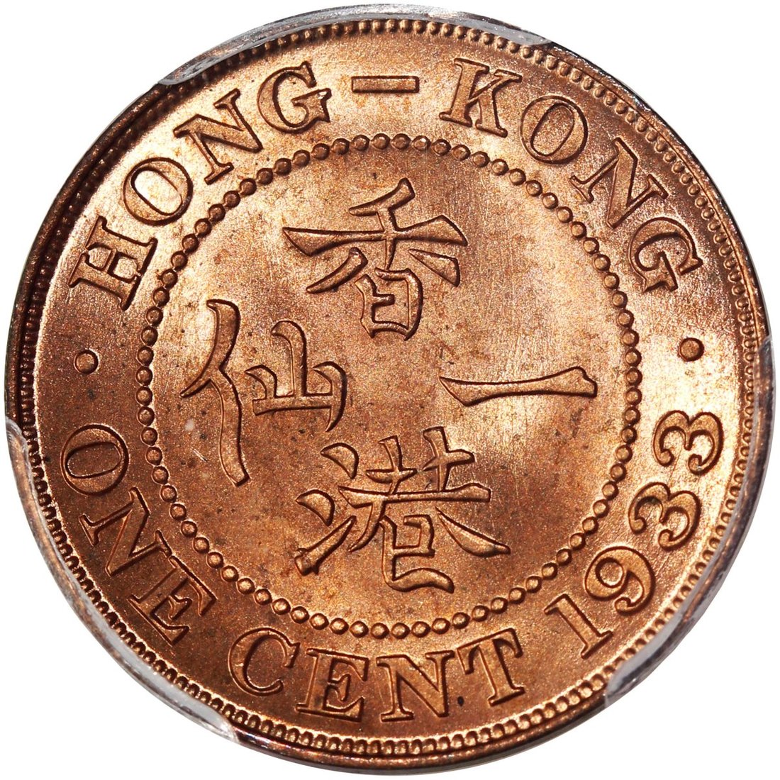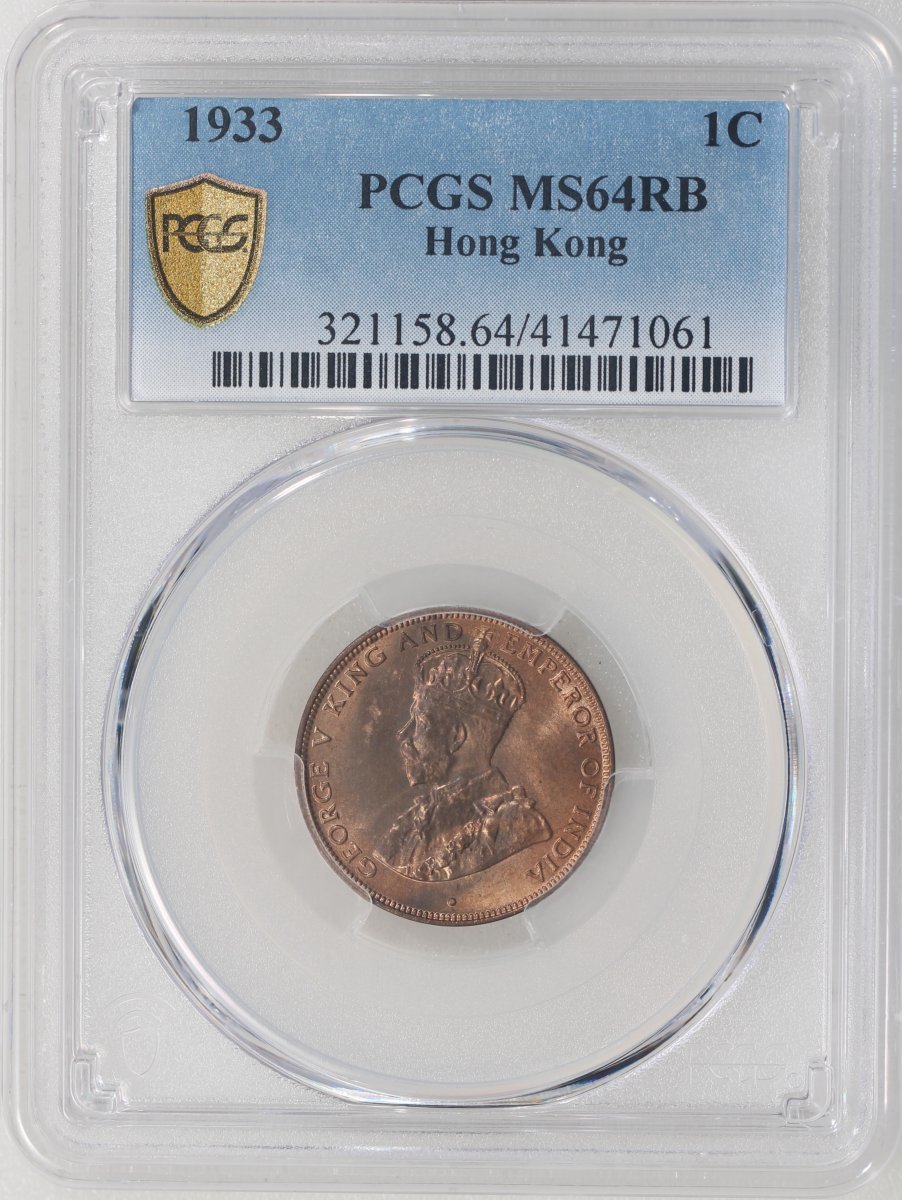 Hong Kong, bronze 1 cent, 1933, PCGS MS64RB, #41471061.