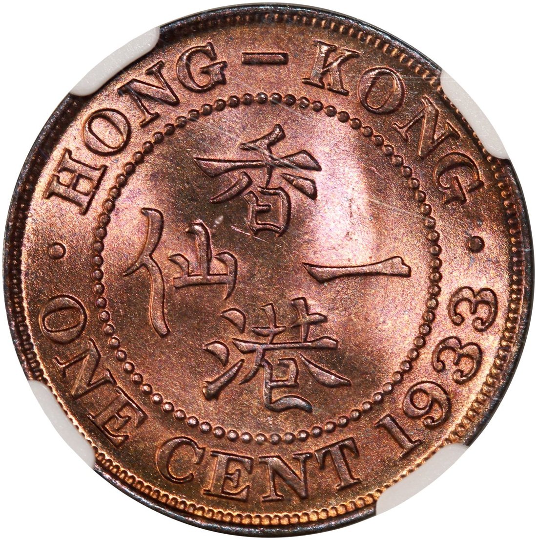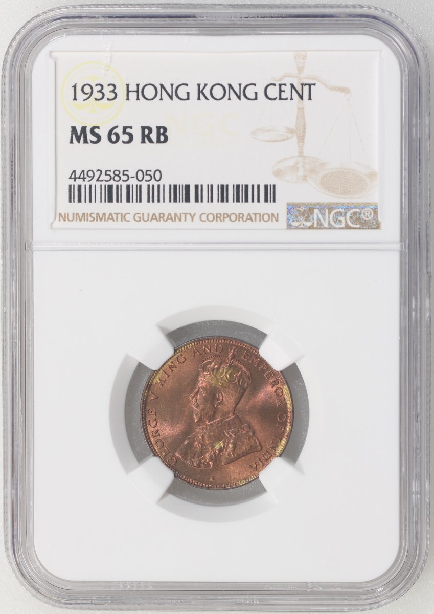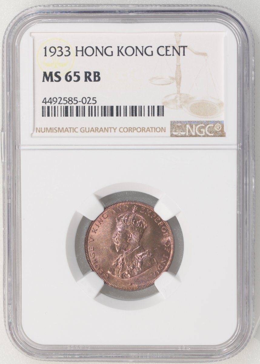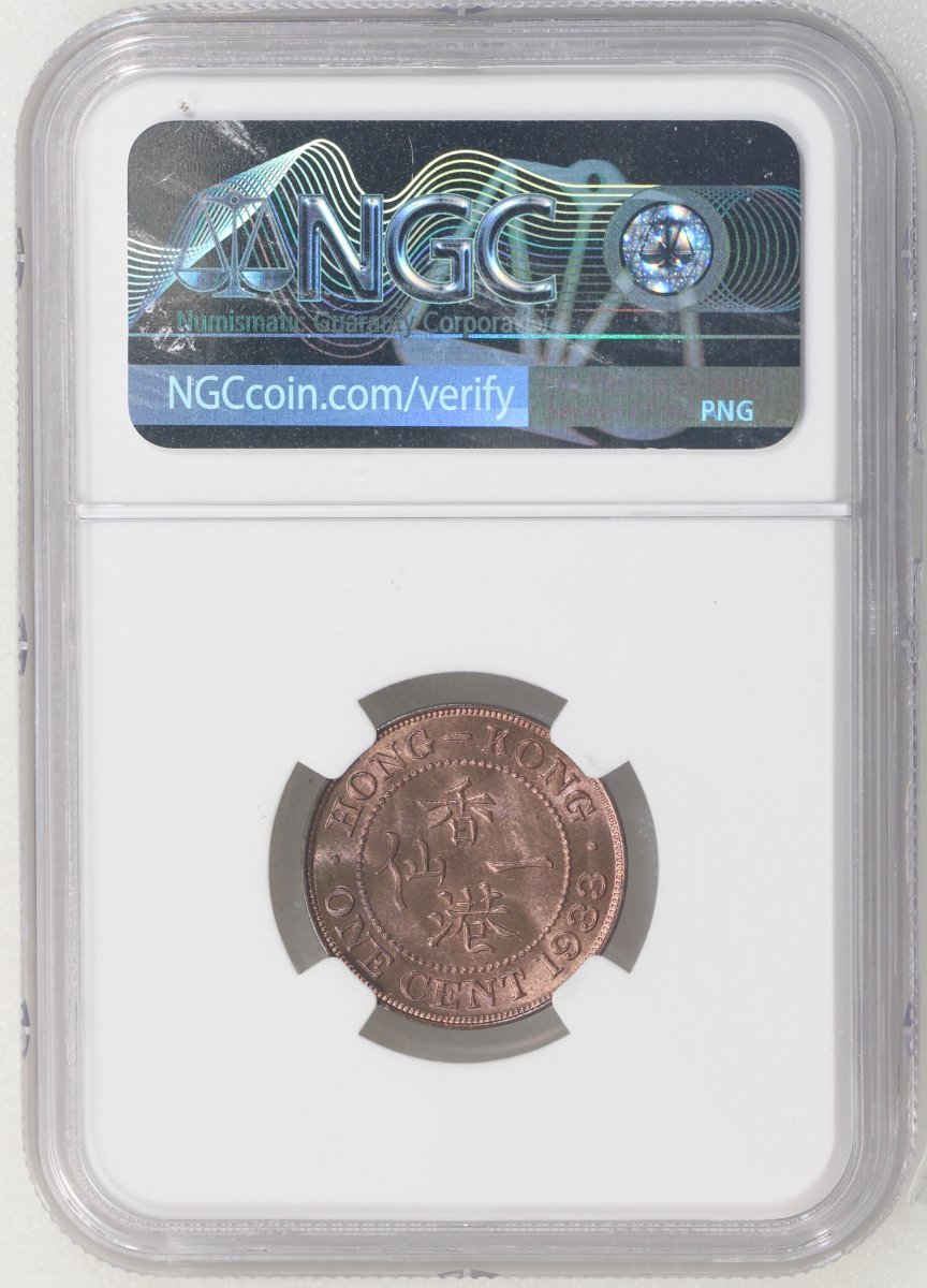 1933年香港1仙一對,均評NGC MS65RB,#4492585-025及#4492585-050