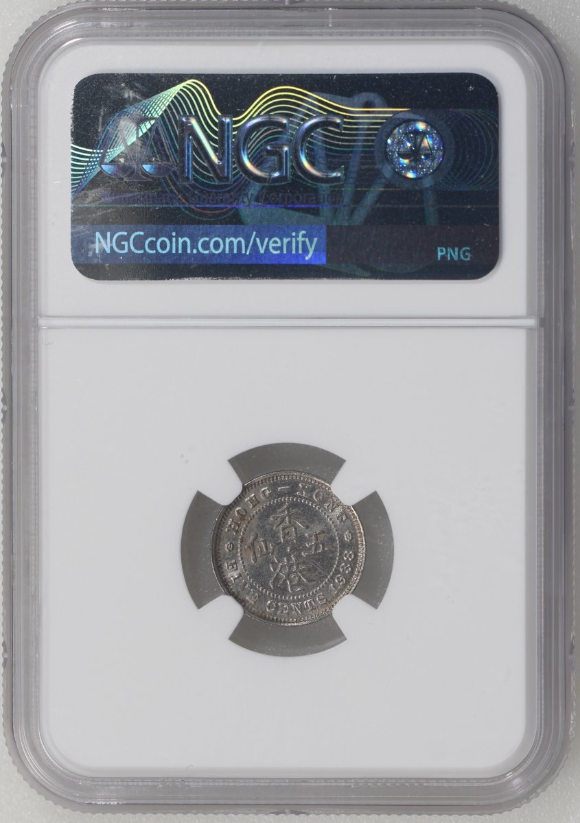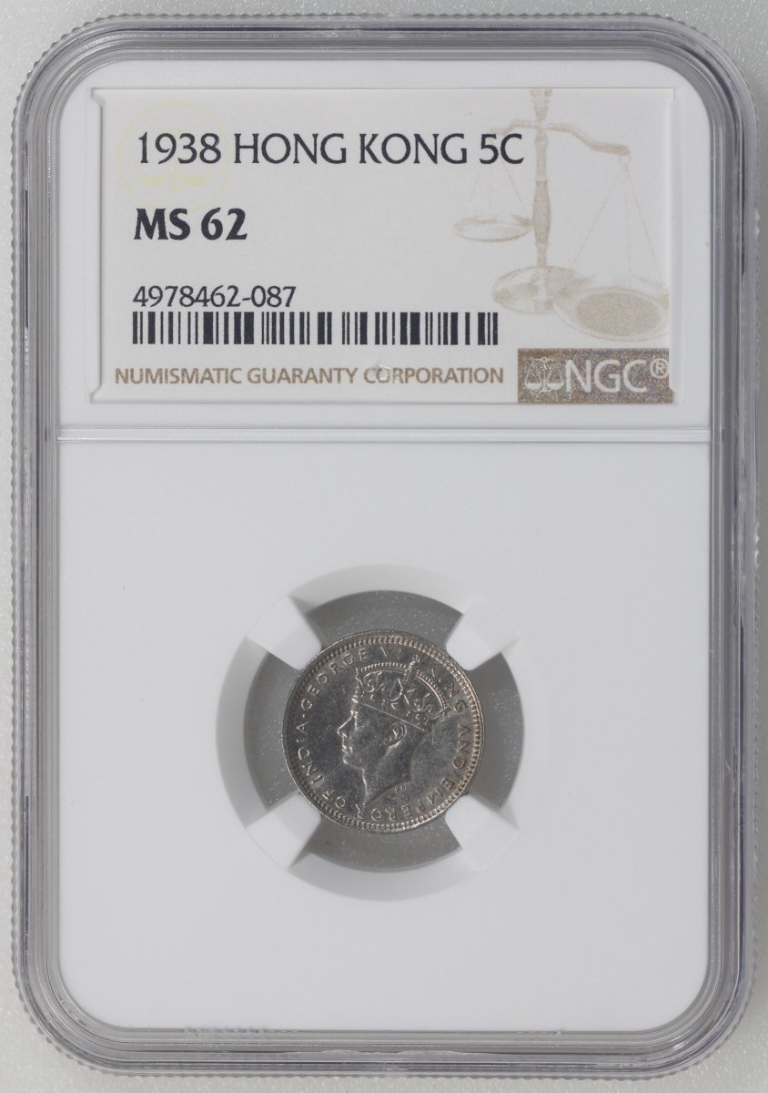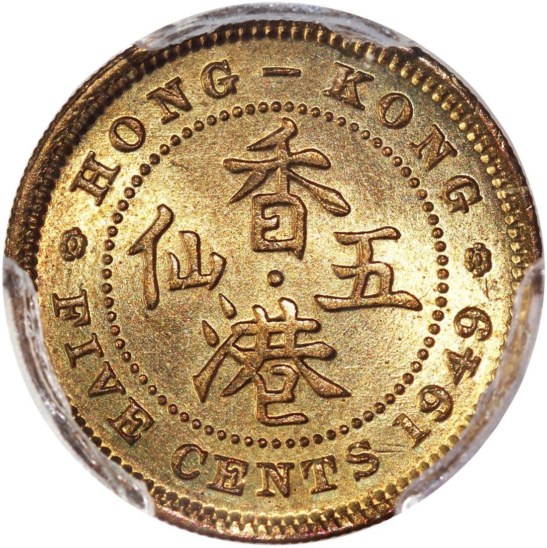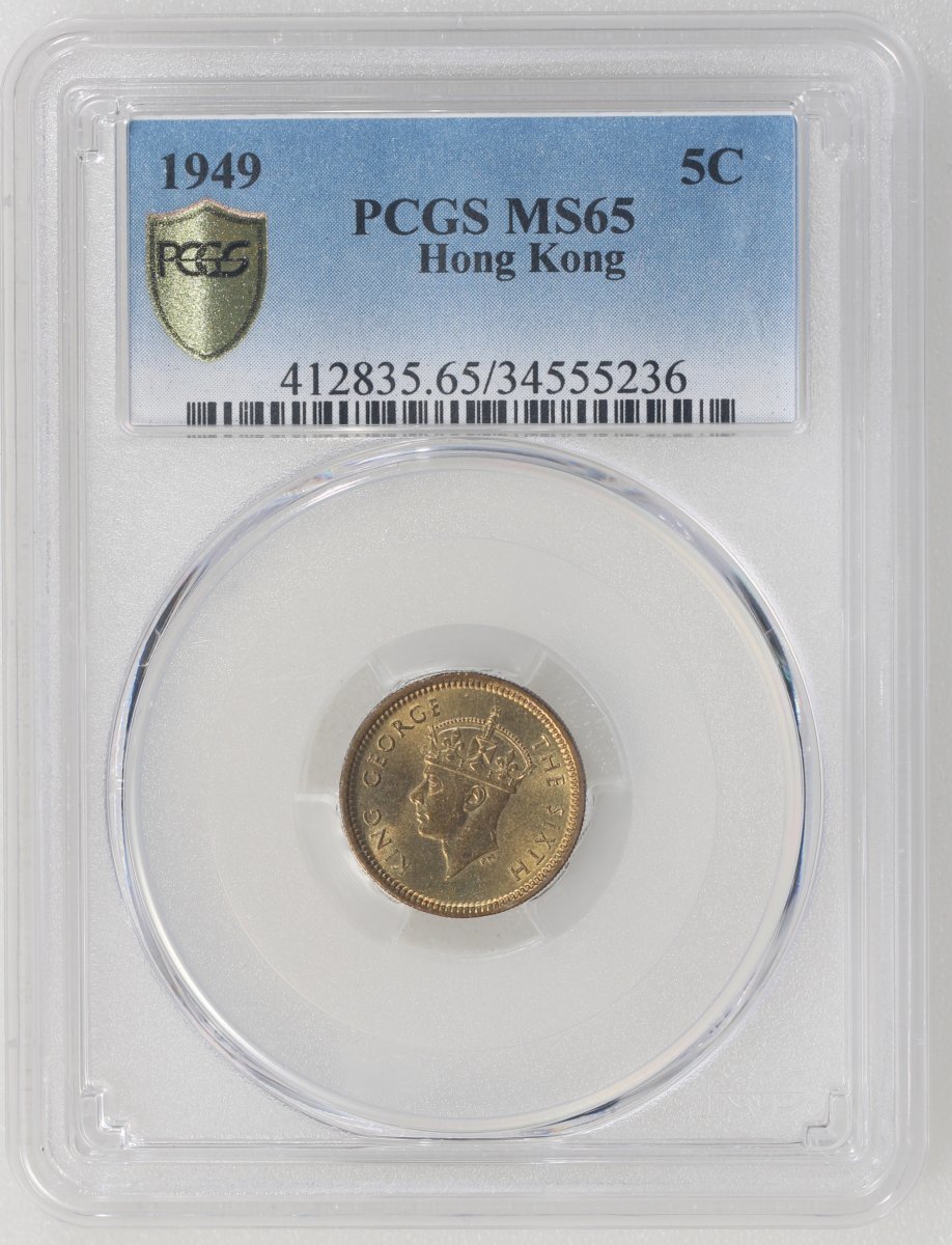 1938年及1949年香港5仙一對,分別評NGC MS62及PCGS MS65,#4978462-087及#34555236
