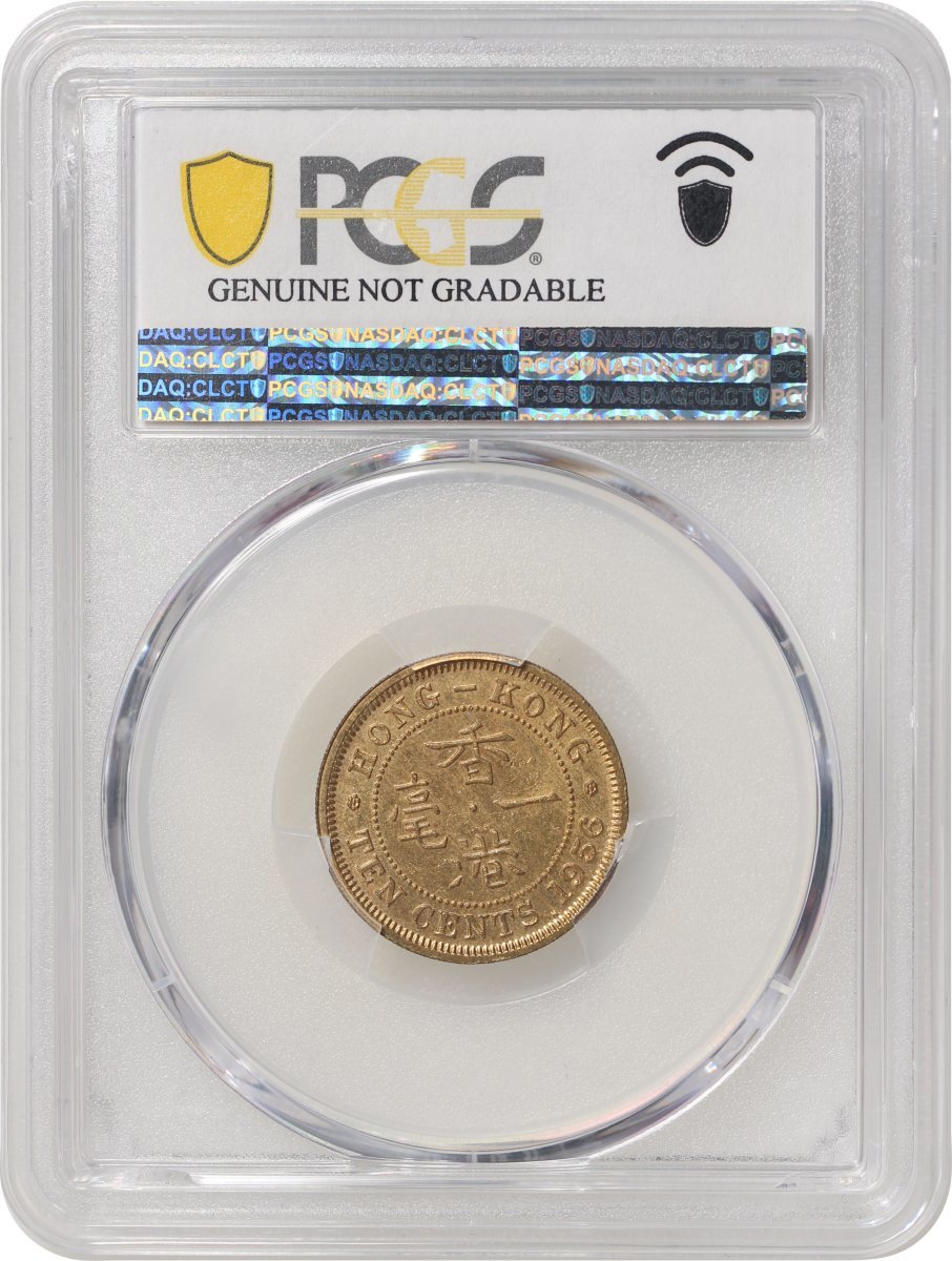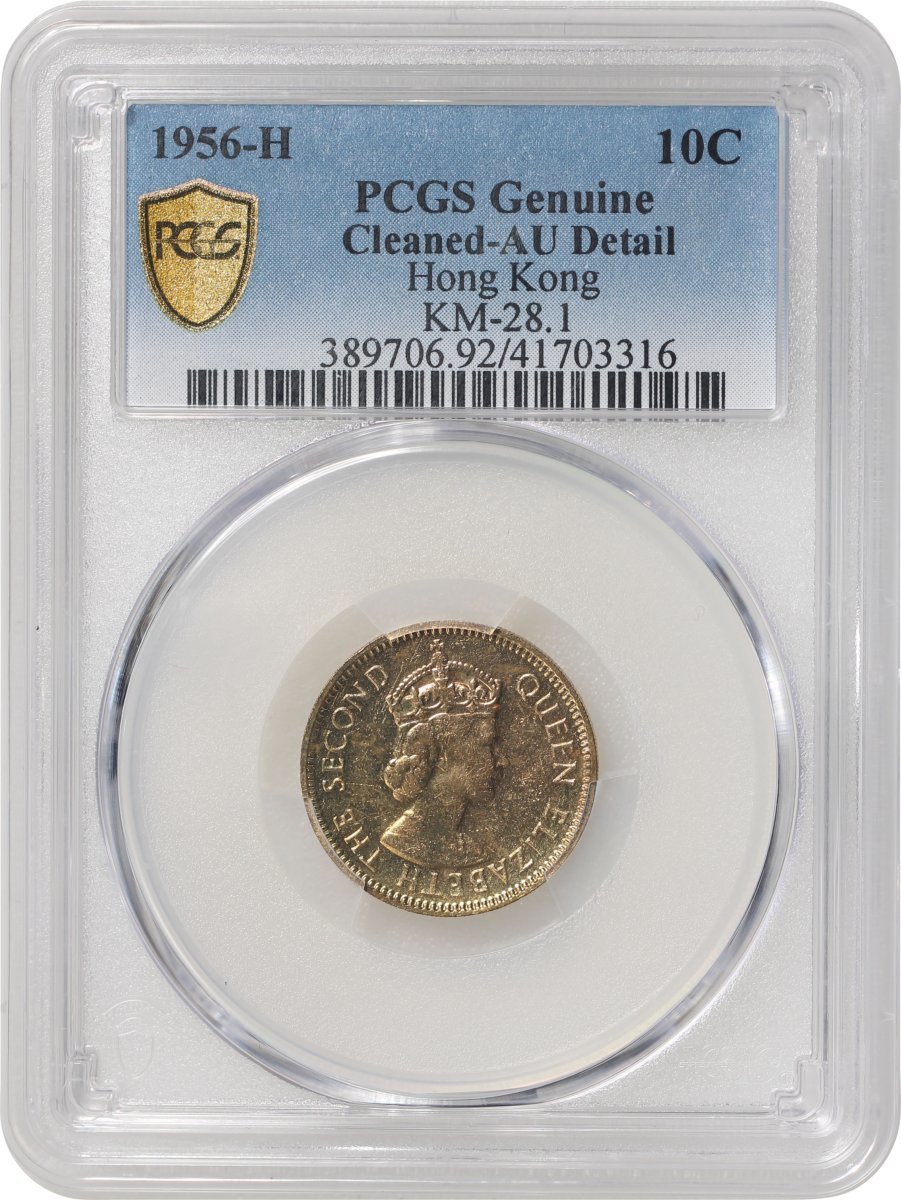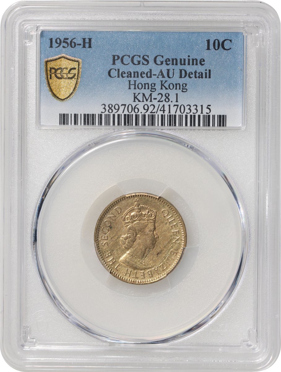 Hong Kong, a pair of nickel brass 10 cents, 1956-H, both graded PCGS Genuine Cleaned - AU Detail, #41703315, #41703316. (2)
