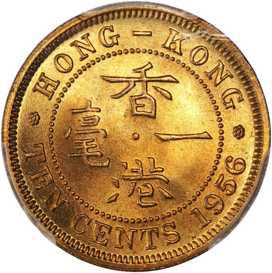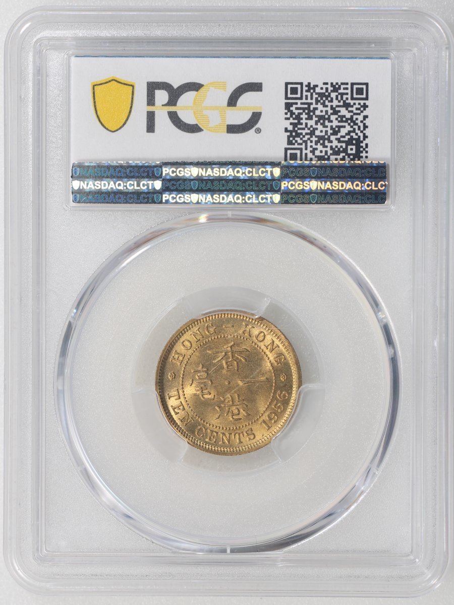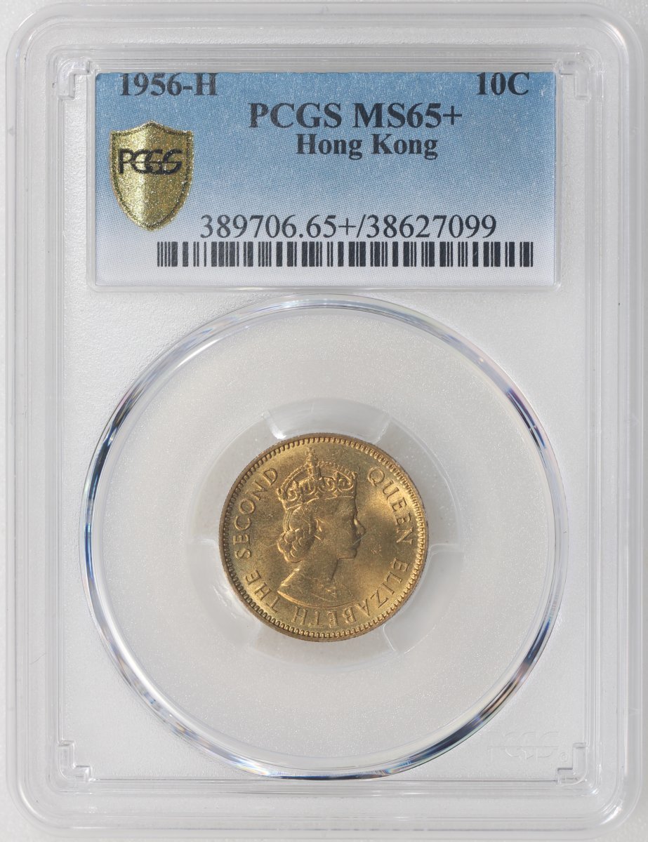 Hong Kong, copper nickel 10 cents, 1956-H, PCGS MS65+. Cert.#38627099