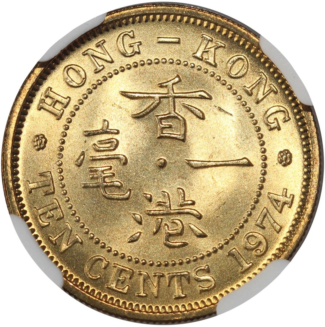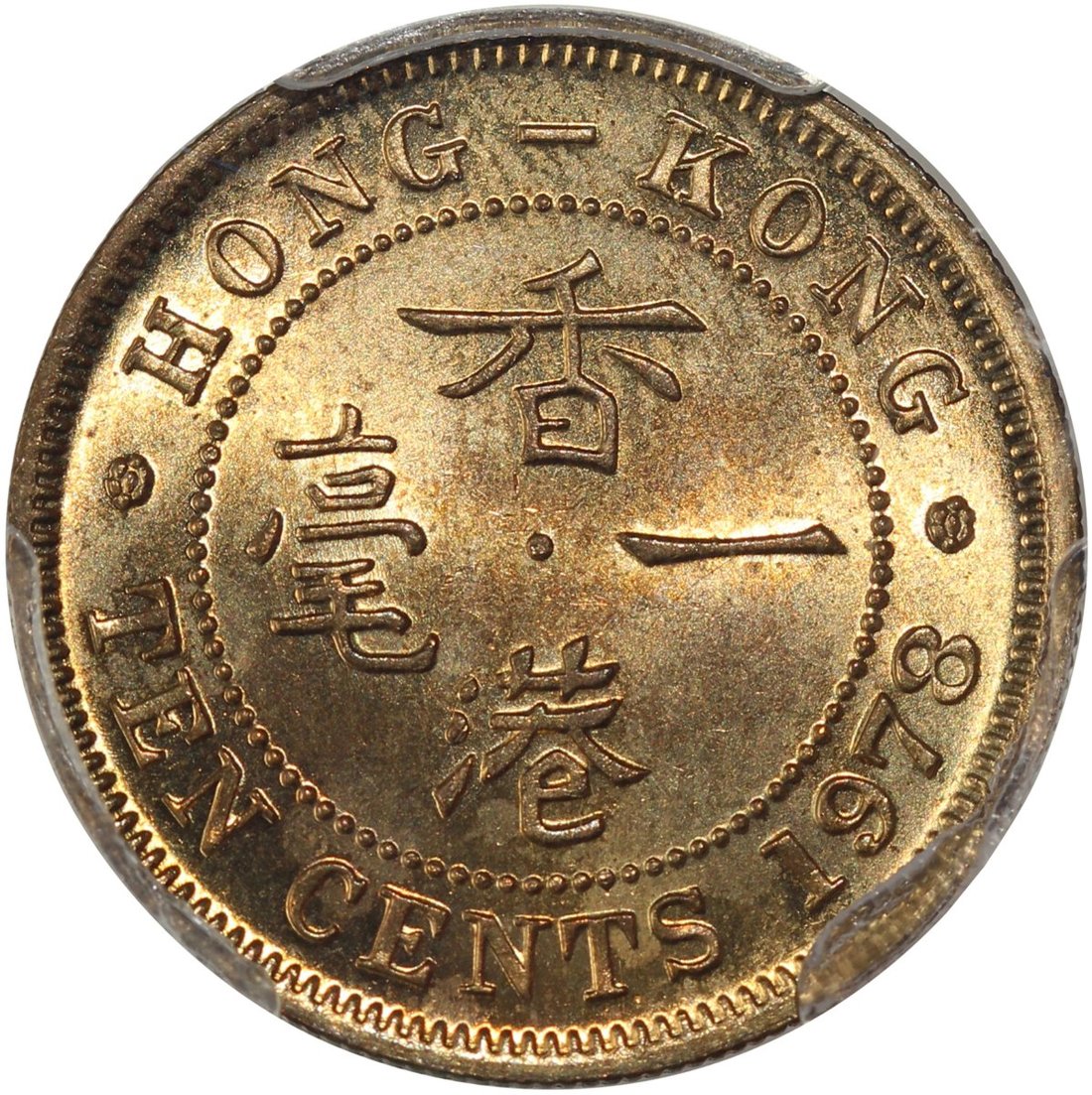 Hong Kong, group of 5, consisting of: nickel brass 10 cents, 1974H, 1978, and 1979, copper nickel 50 cents, 1973, and copper nickel $1, 1974,
