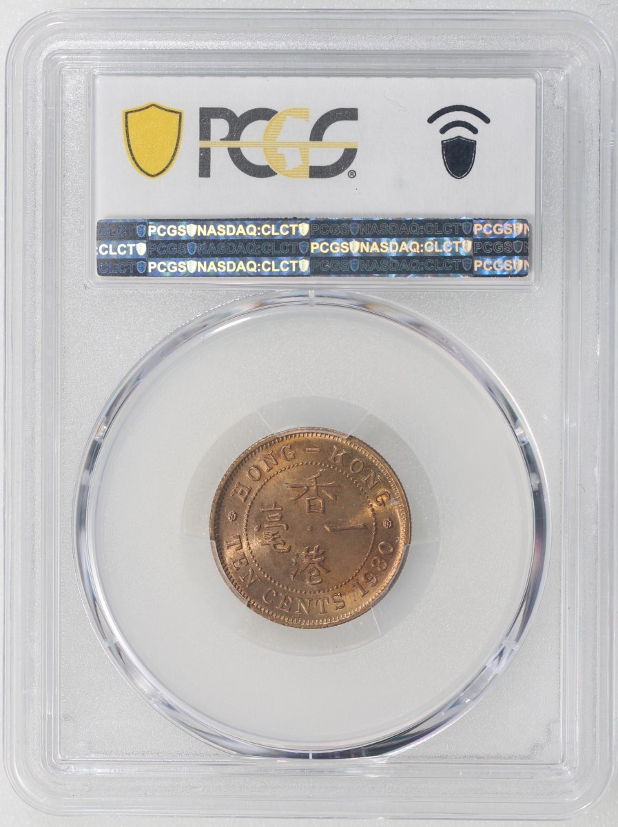 Hong Kong, nickel brass 10 cents, 1980, PCGS MS63, #40185492