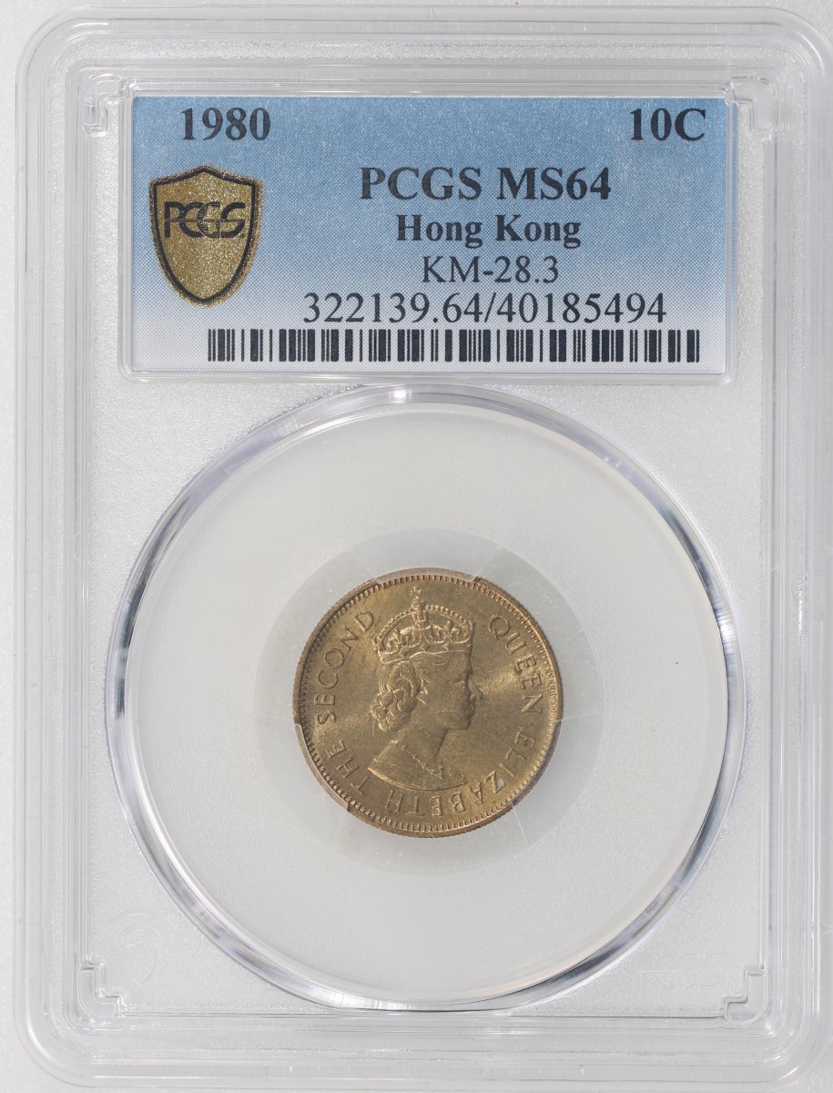 Hong Kong, nickel brass 10 cents, 1980, PCGS MS64, #40185494