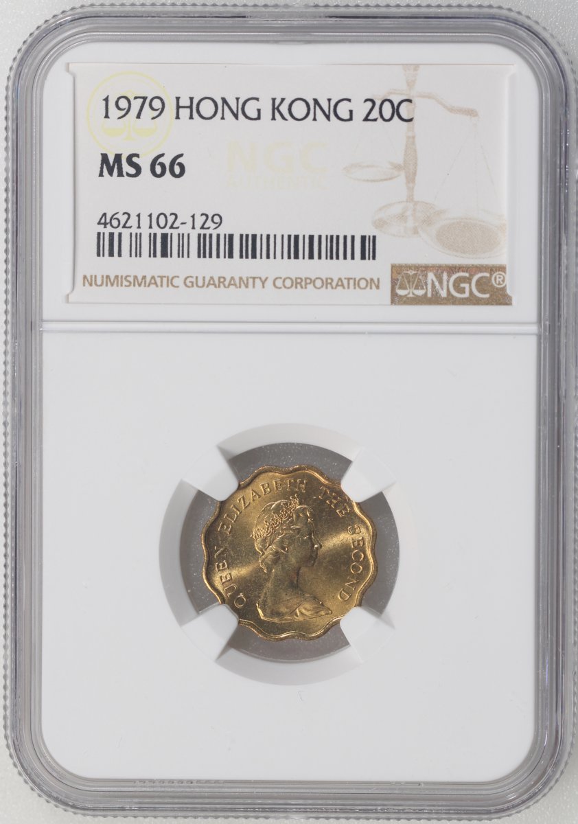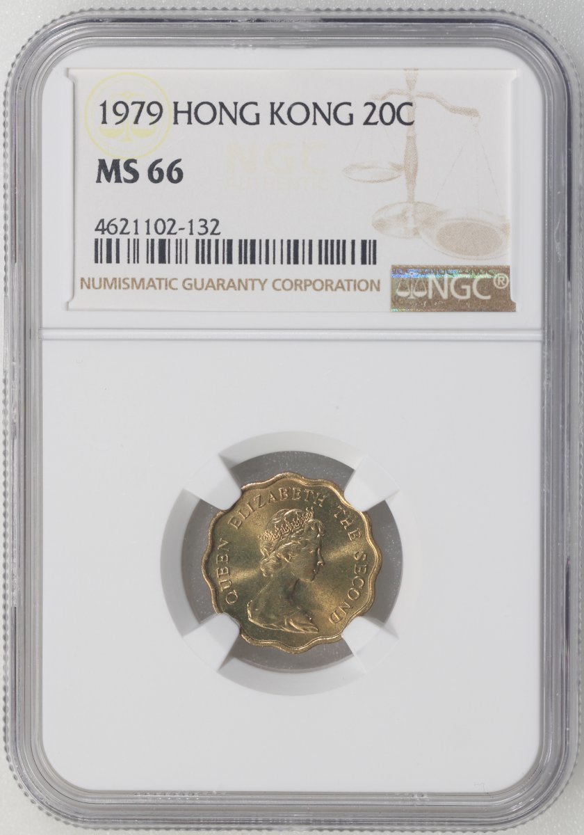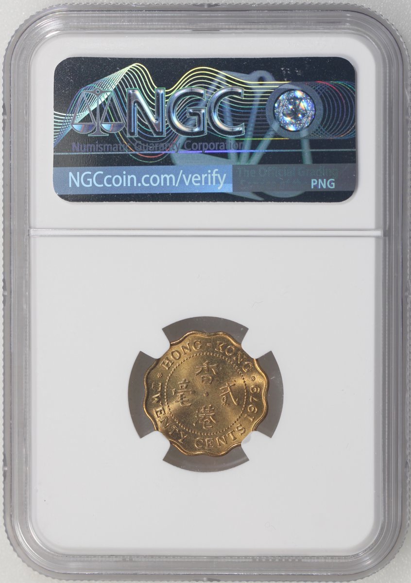 Hong Kong, a group of 6x nickel brass 20 cents, 1974 (3) and 1979 (3), all NGC MS66, #4622065-008, #4622065-017, #4622066-052, #4621102-127, #4621102-129, #4621102-132. (6)