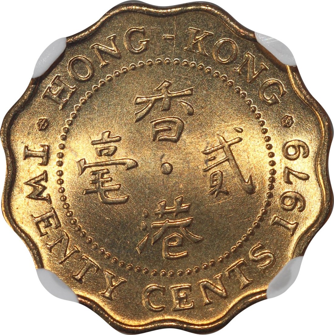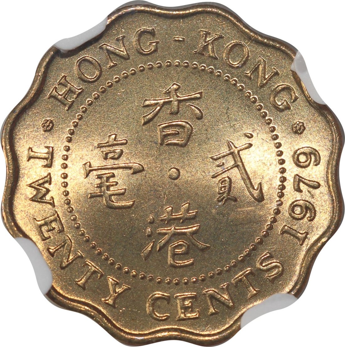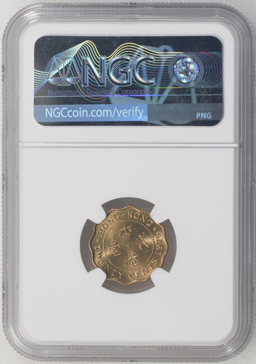 Hong Kong, a group of 6x nickel brass 20 cents, 1974 (3) and 1979 (3), all NGC MS66, #4622065-008, #4622065-017, #4622066-052, #4621102-127, #4621102-129, #4621102-132. (6)