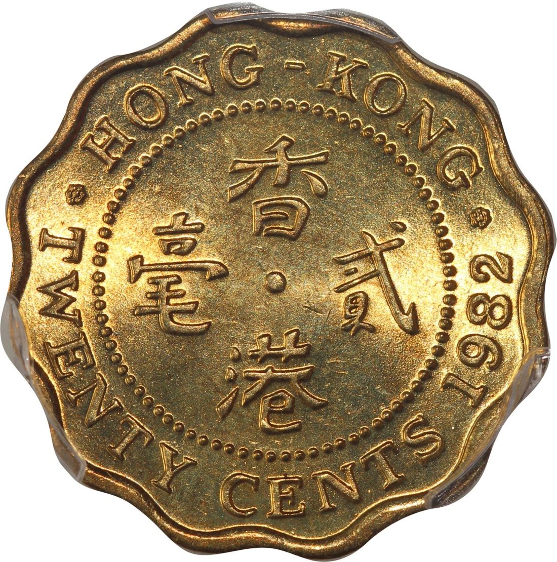 Hong Kong, nickel brass 20 cents, 1982, PCGS MS67, #42127630.