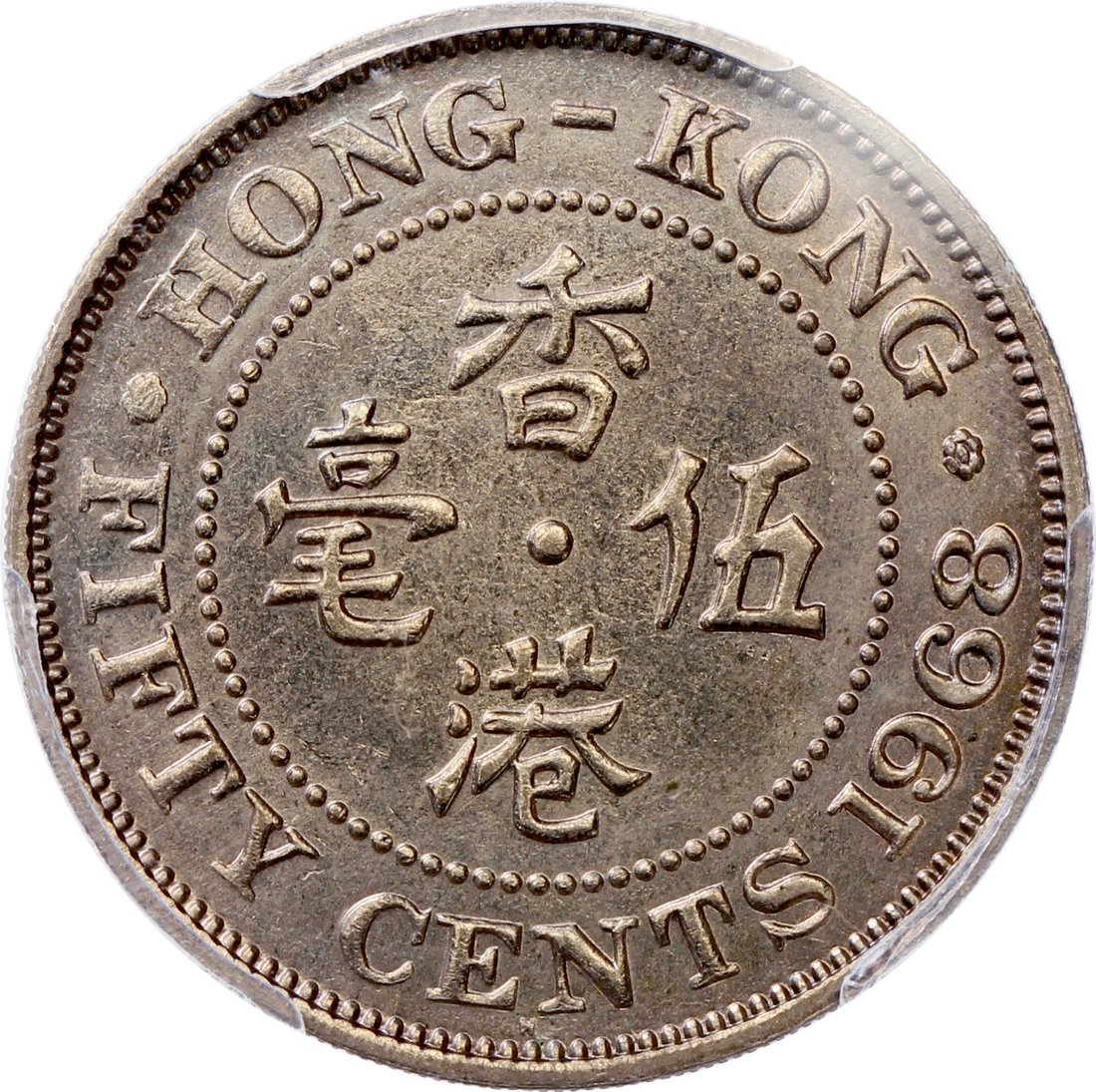 Hong Kong, copper-nickel 50 cents, 1968-H, Elizabeth II on obverse,