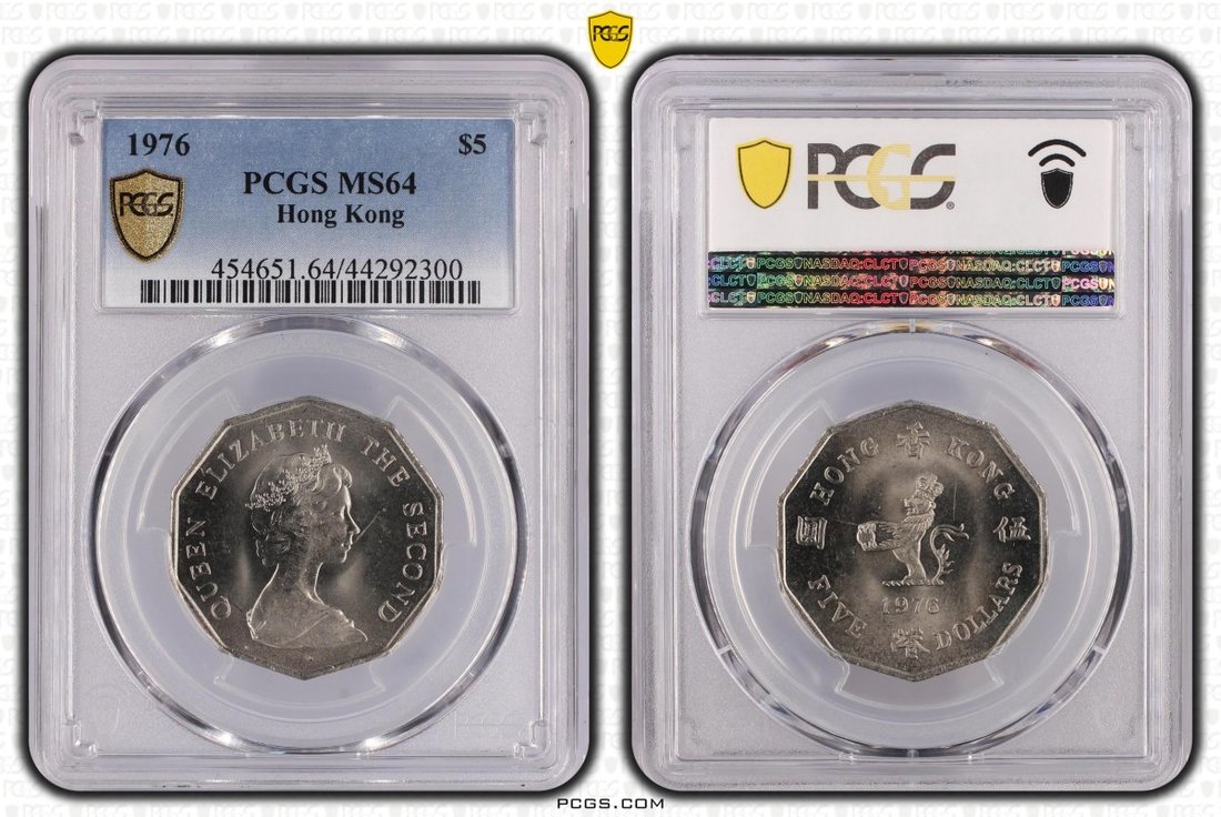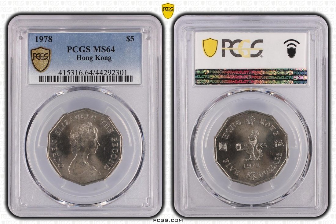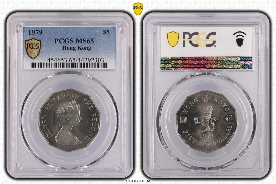 Hong Kong, group of 3x copper nickel $5, 1976, 1978 and 1979, the first two graded PCGS MS64, the third MS65, #44292300, #44292301 and #44292303. (3)