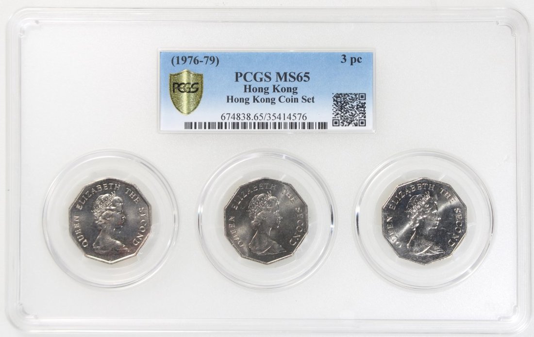 1976,1978及1979年香港$5一組3枚,均評PCGS MS65,裝封於同一評級盒