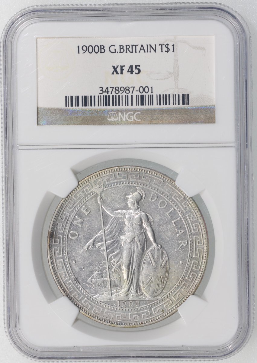 1900-B英國貿易銀元,NGC XF45,#3478987-001