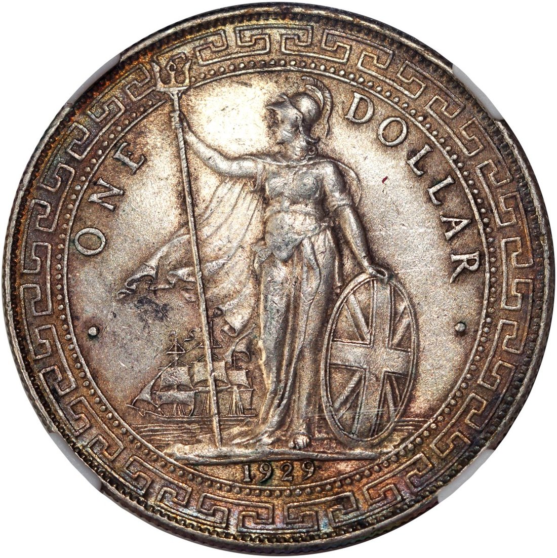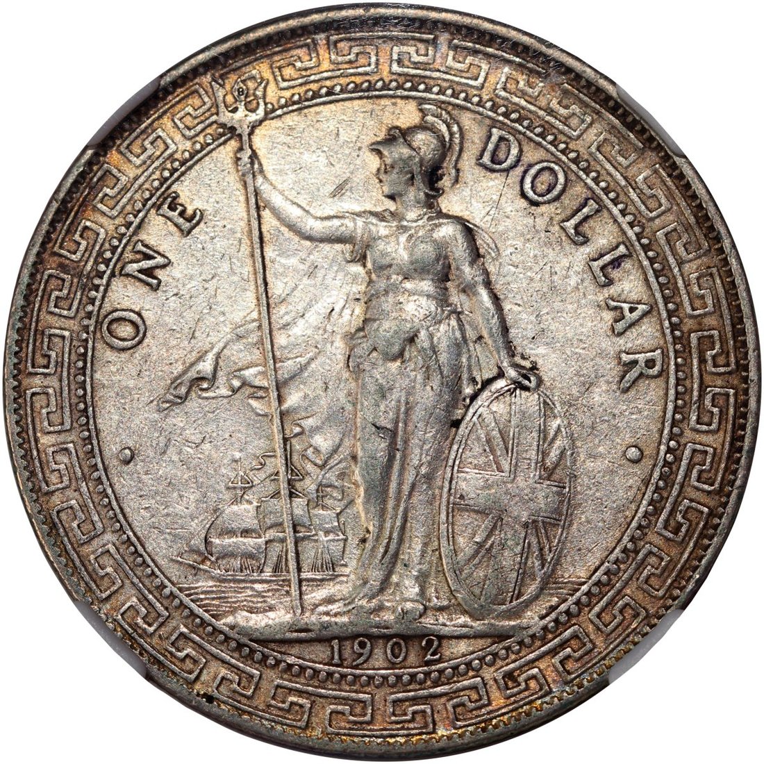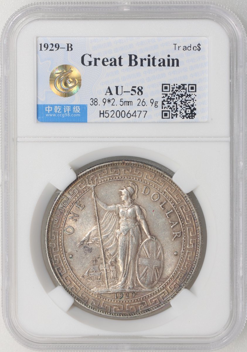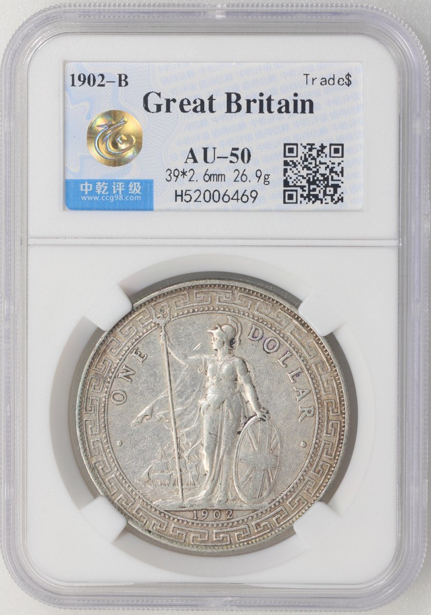 Great Britain, lot of 2 silver trade dollars, 1902-B and 1929-B, graded by Zhong Qian AU 50 and AU 58 respectively (2)