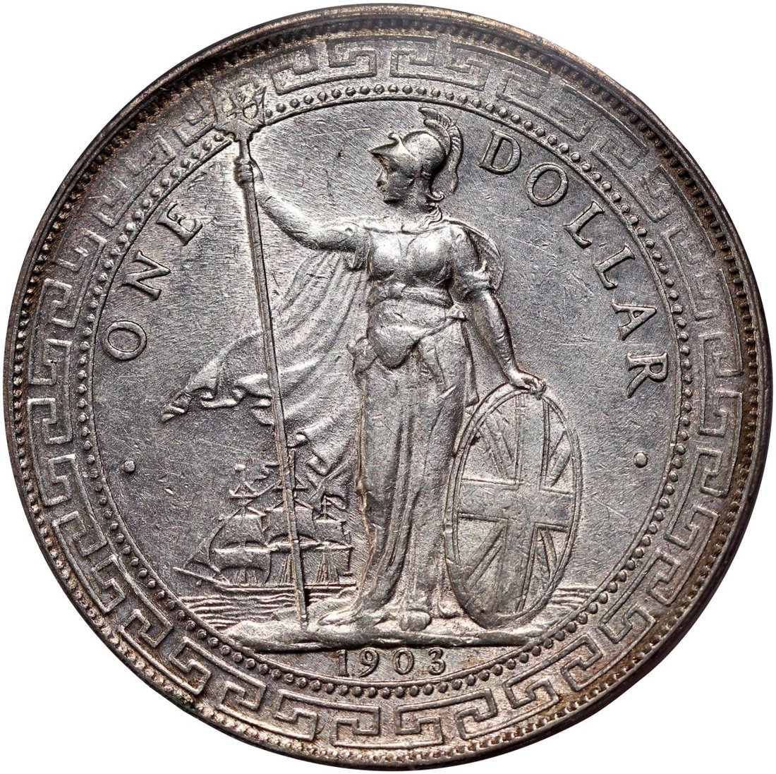 Great Britain, silver $1, 1903-B, Trade dollar, PCGS AU Detail, cleaned. #36202009