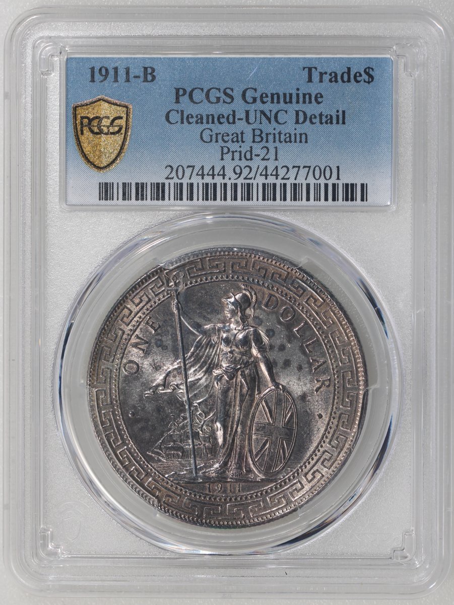 1911-B英國貿易銀元,PCGS UNC Detail,有清洗,#44277001