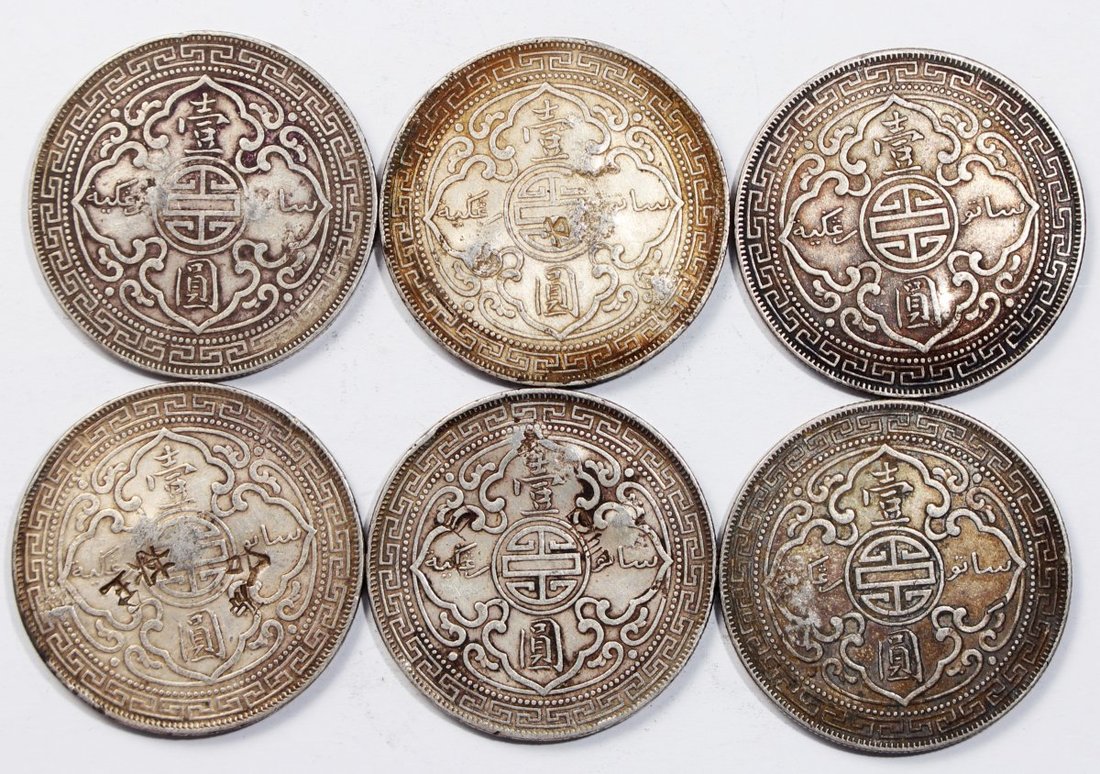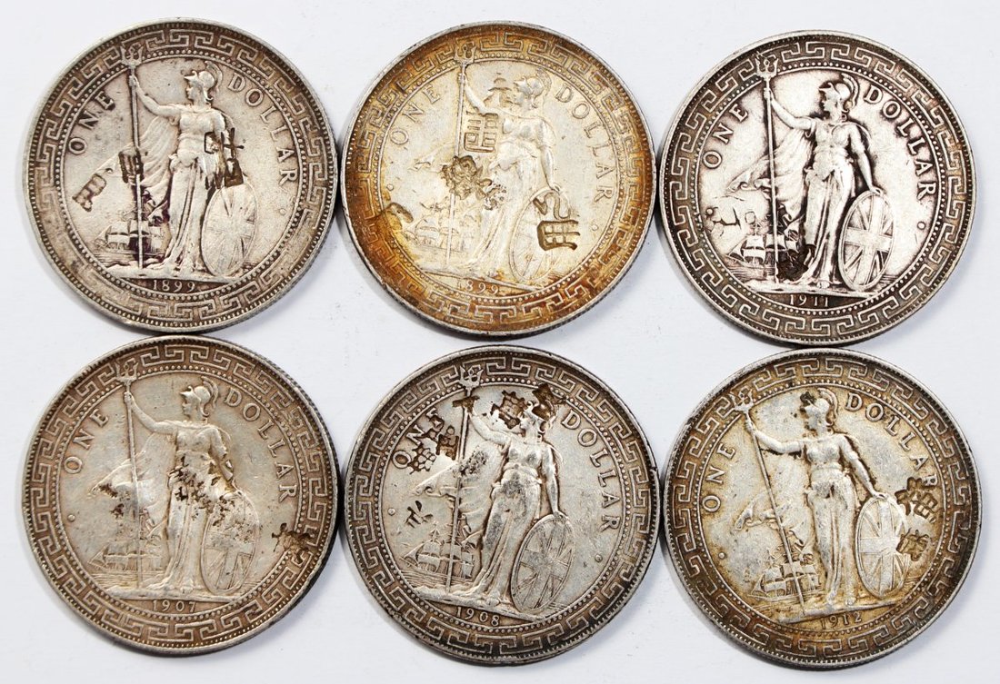 Great Britain, group of 6x silver trade dollars, 1899-B (3), 1907-B, 1908-B, 1911-B and 1912-B, fine or better. All chopmarked (6)