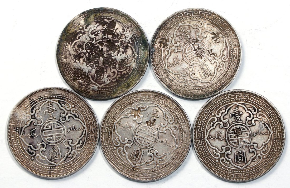 1899-B,1899-B,1903-B及1908-B 英國貿易銀元一組5枚,1908-B有2枚,F或以上品相,均有打戳