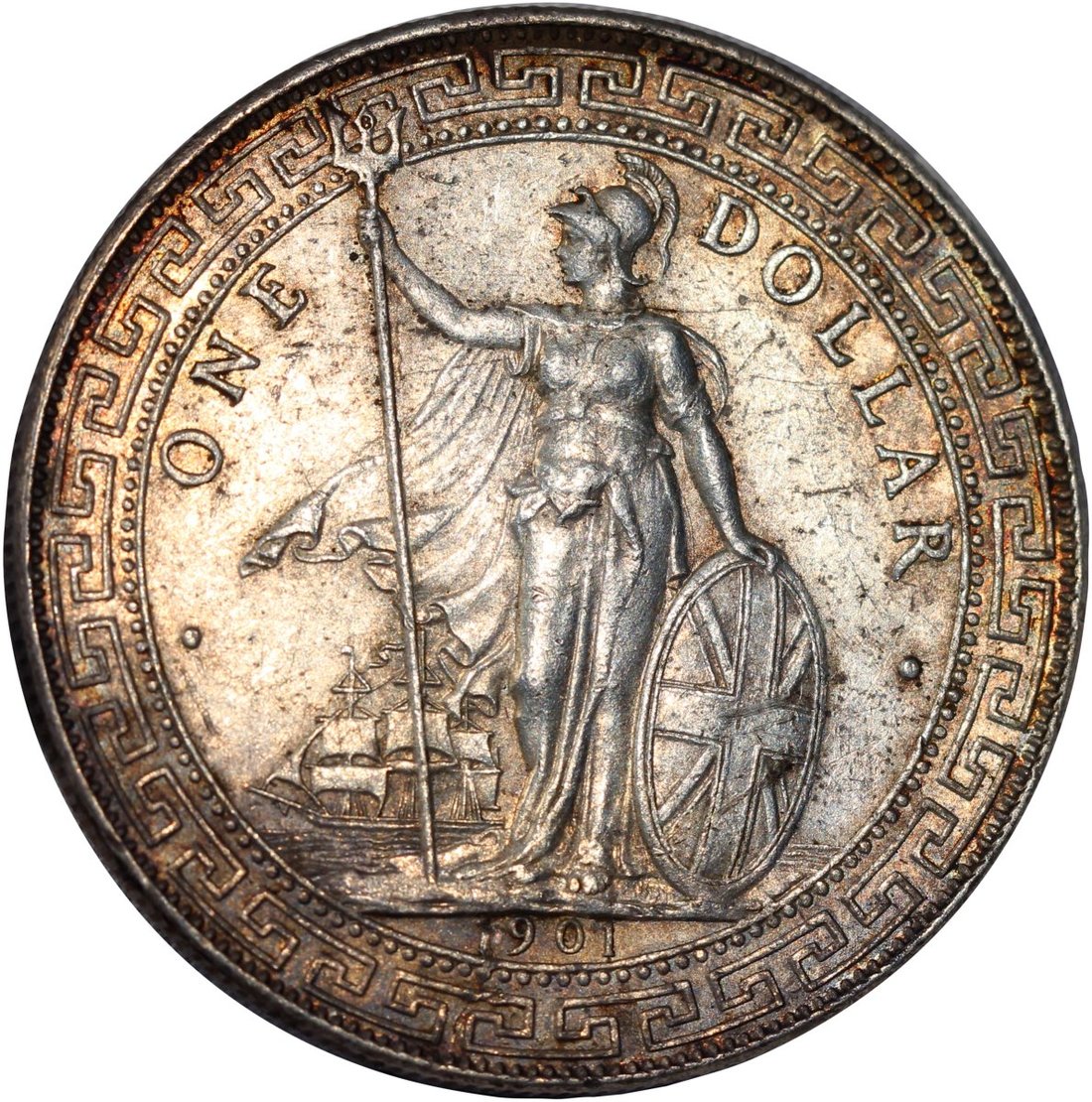 1901-B英國貿易銀元,EF品相