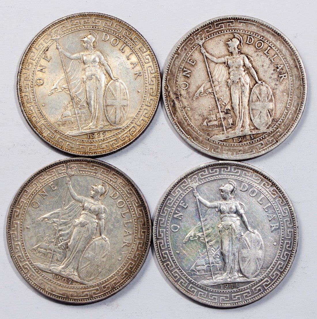 1903-B,1907-B,1911-B及1929-B英國貿易銀元一組4枚,F至VF