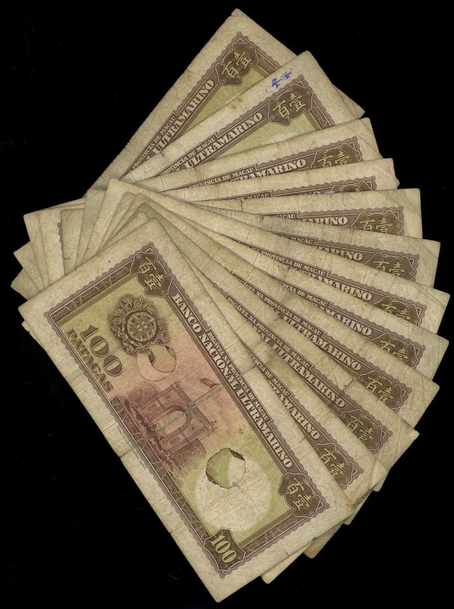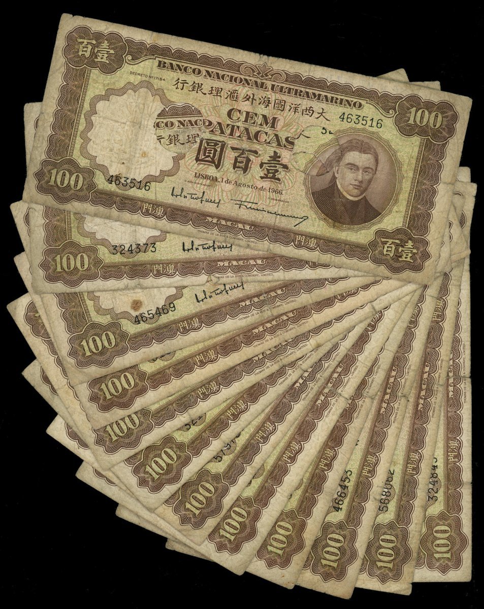 Banco Nacional Ultramarino, a lot of 12x 100 patacas, 1966, all punched holes cancelled, (Pick 51), generally fine to very fine.(12)