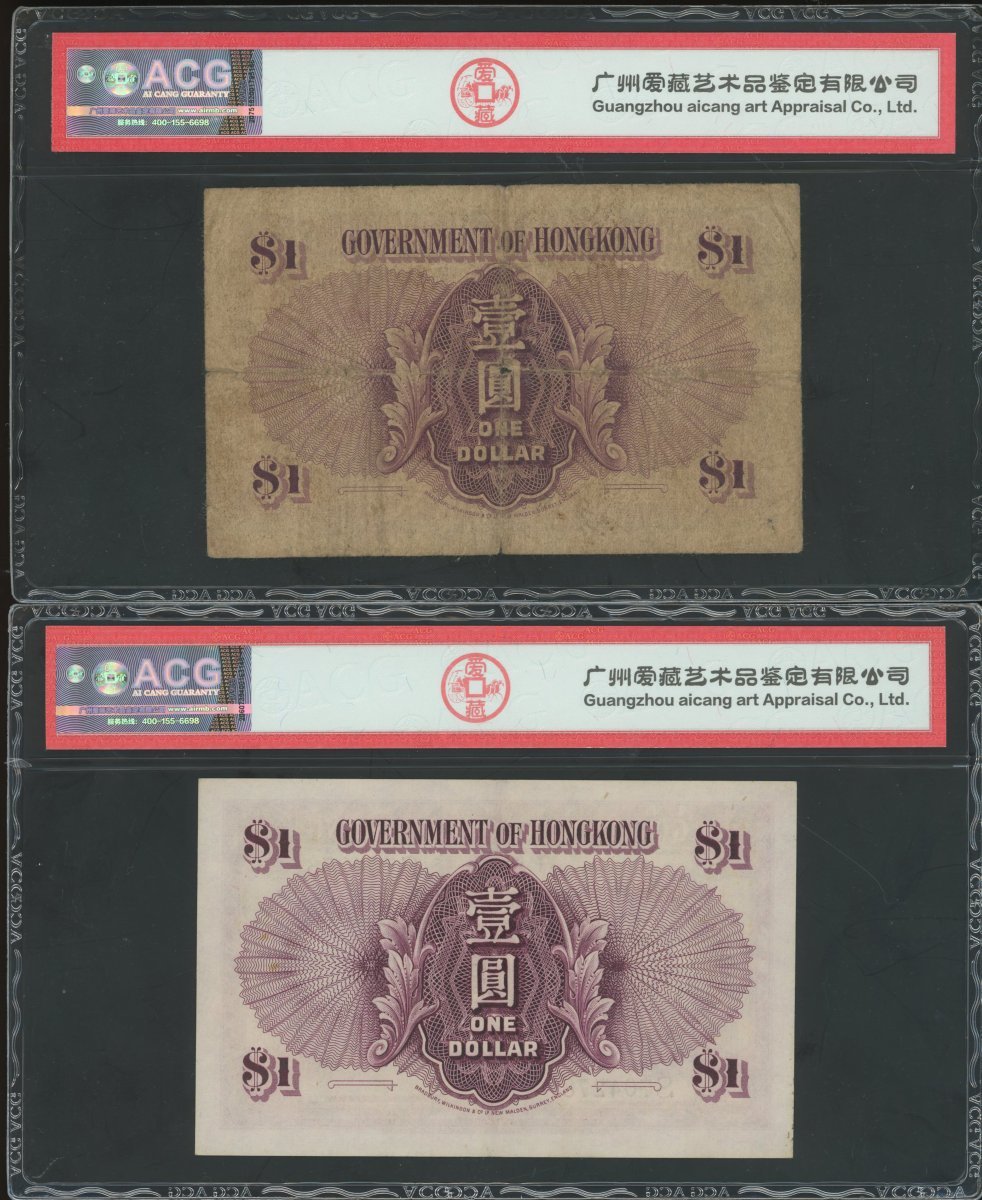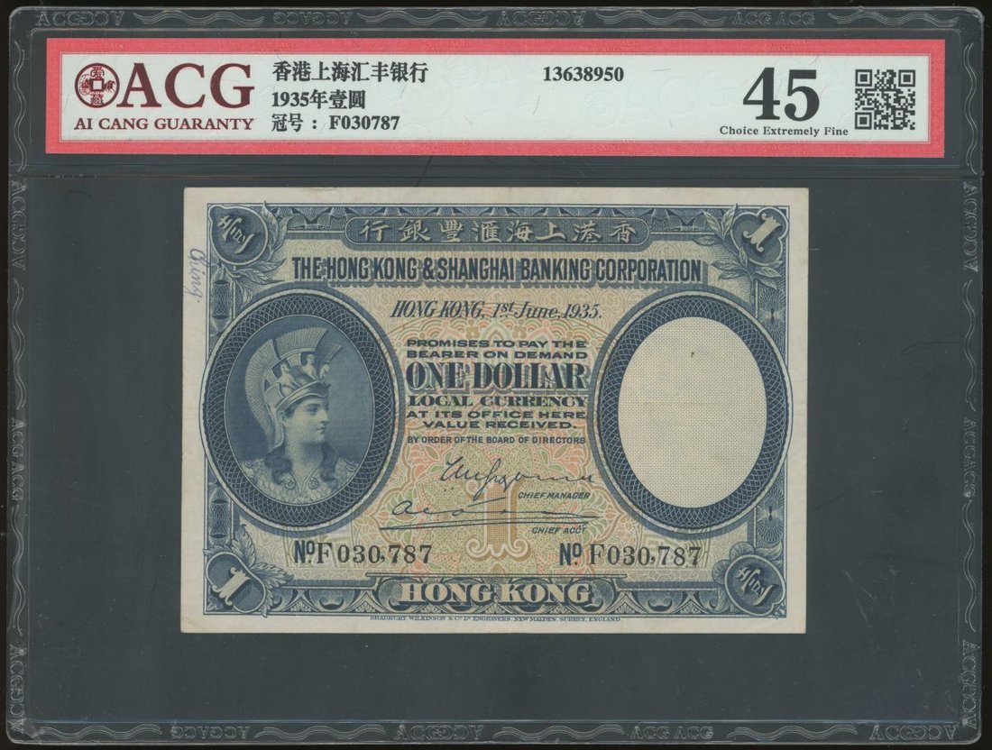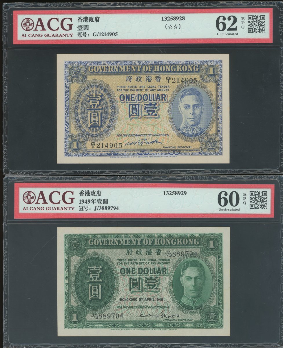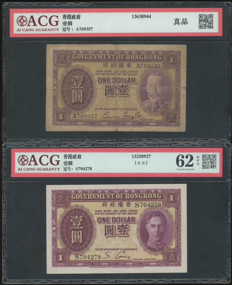 1935,1936,1950及1949年香港政府1元4枚,及1935年香港上海匯豐銀行1元,均評自第三方評級機構,建議預覽